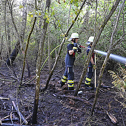 Auf rund 1.000 Quadratmeter ist eine Waldfläche im Stadtteil Fasanerie in Brand geraten.
