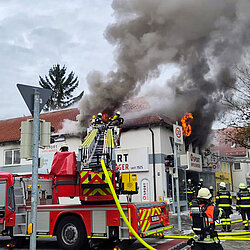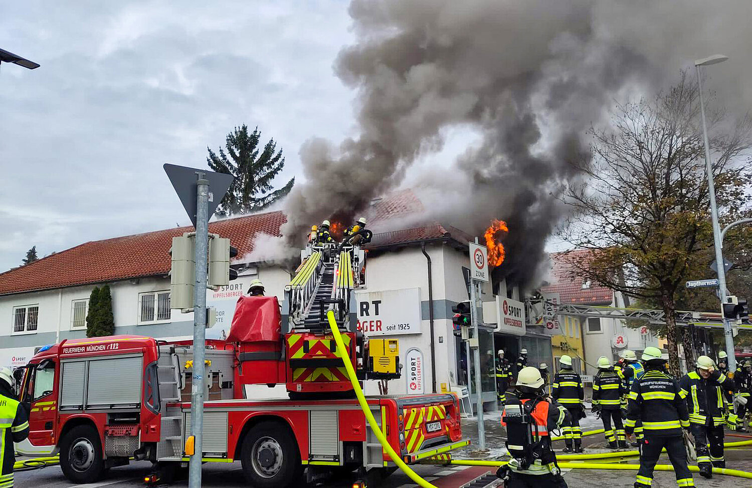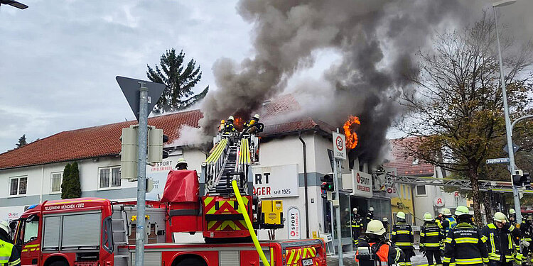 Als ein Mitarbeiter gegen 9 Uhr das Ladengeschäft betrat, bemerkte er Brandgeruch und alarmierte die Feuerwehr. Bereits auf der Anfahrt war für die Einsatzkräfte eine dichte Rauchentwicklung sichtbar. Aus dem Geschäftsgebäude schlugen im ersten Obergeschoss bereits aus mehreren Fenstern die Flammen.