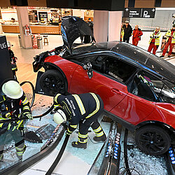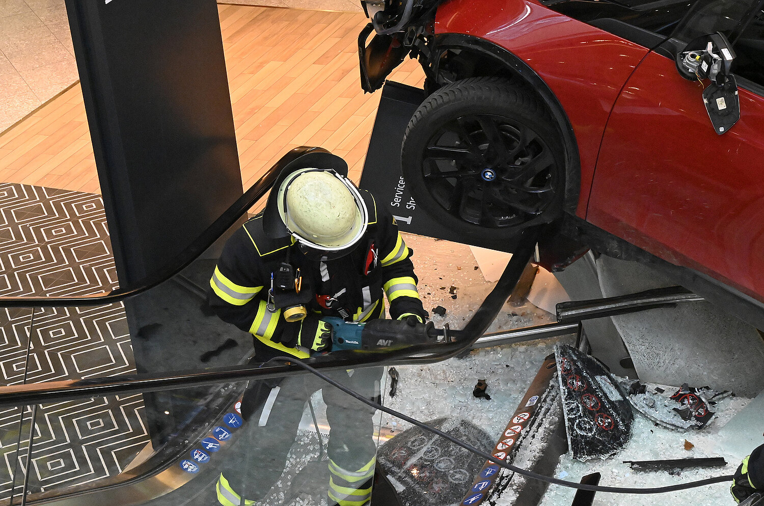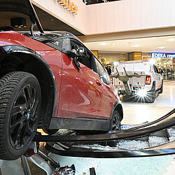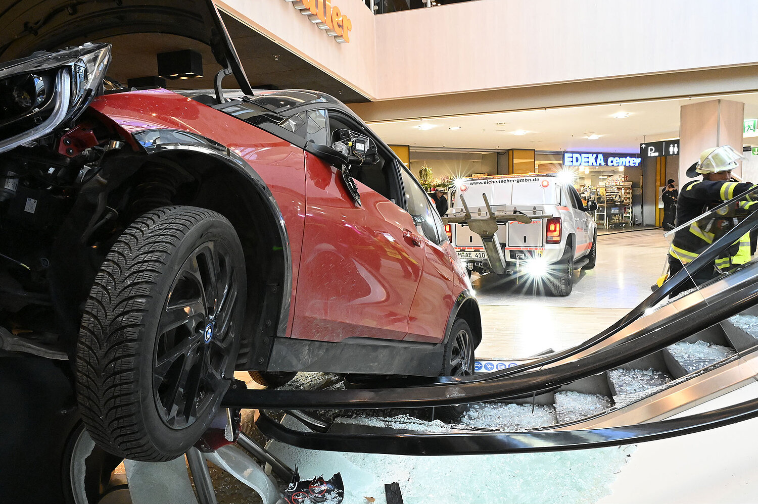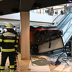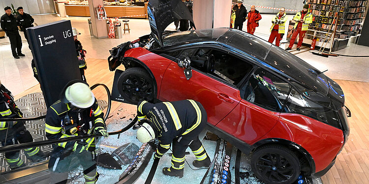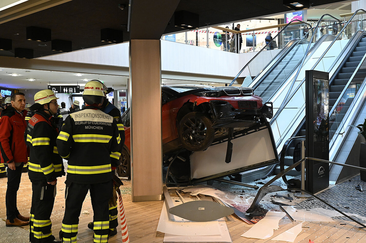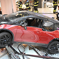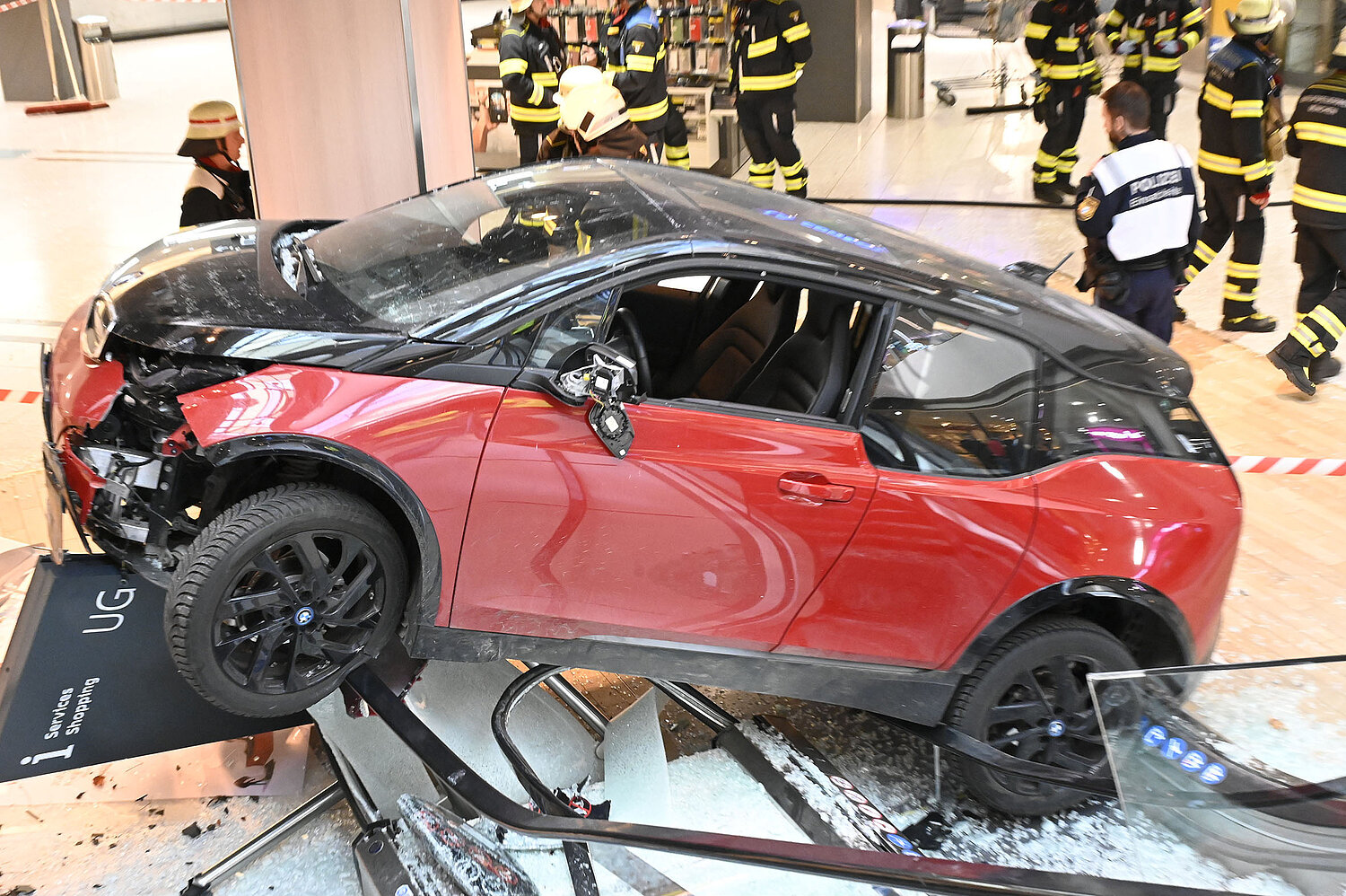 Ein Pkw ist am Mittwochvormittag durch den Eingang ins OEZ gefahren und erst nach 30 Metern im Gebäude zum Stehen gekommen.