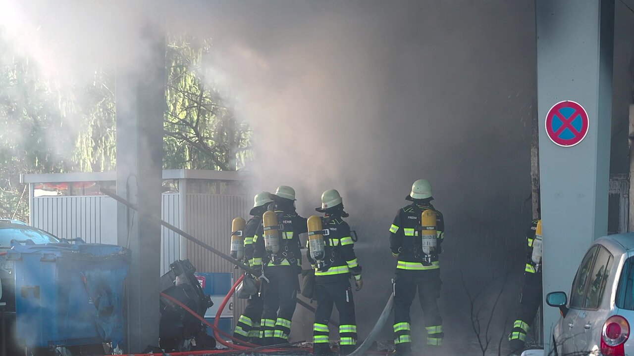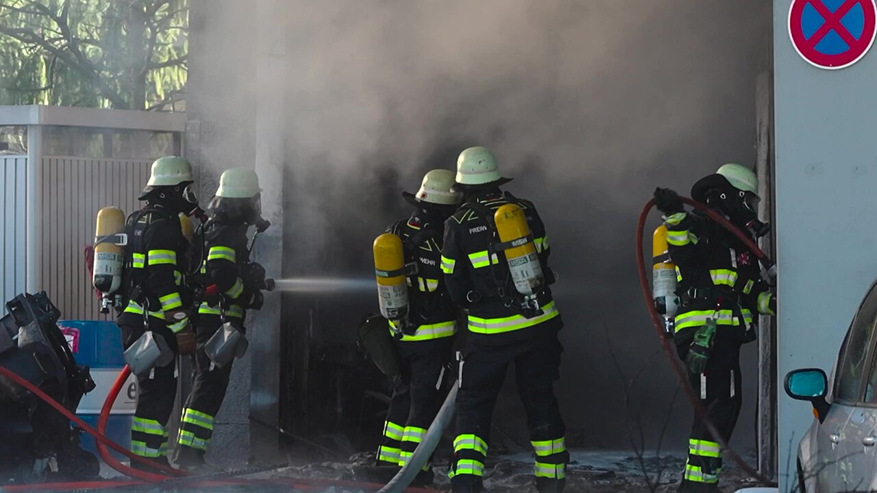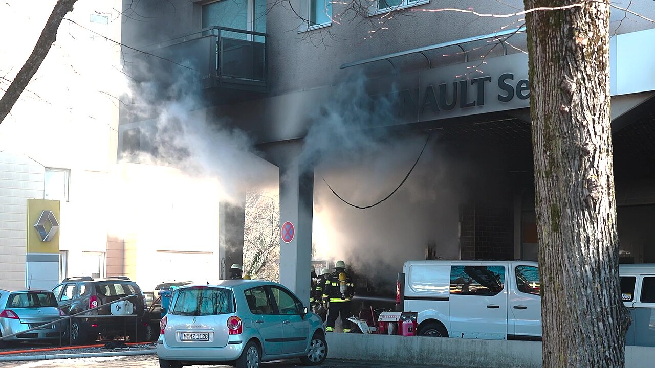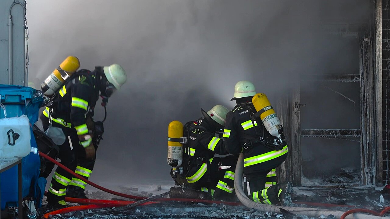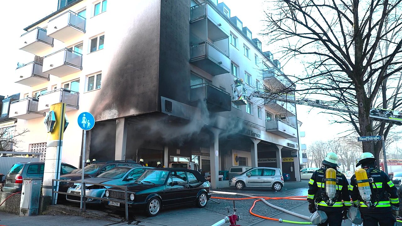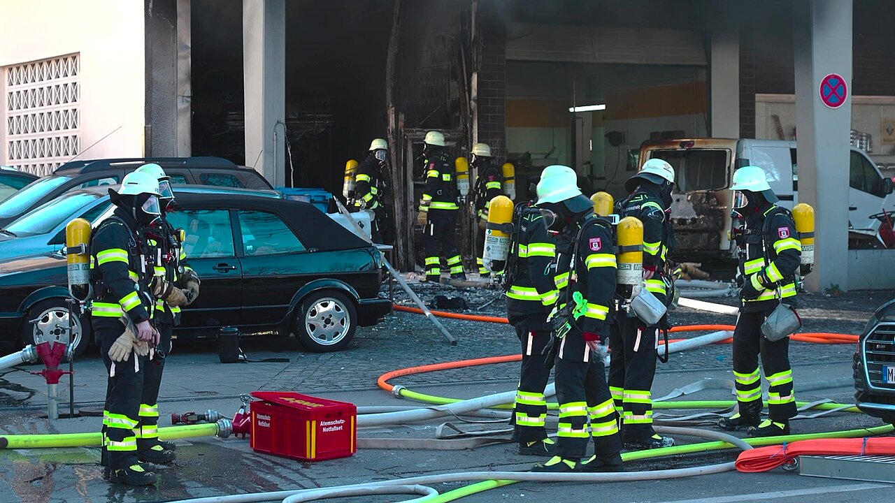 Bei einem Brand in einer Autowerkstatt in der Albert-Roßhaupter-Straße wurde am frühen Nachmittag ein 53-jähriger und ein 36-jähriger Mann jeweils leicht verletzt.