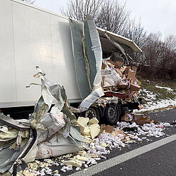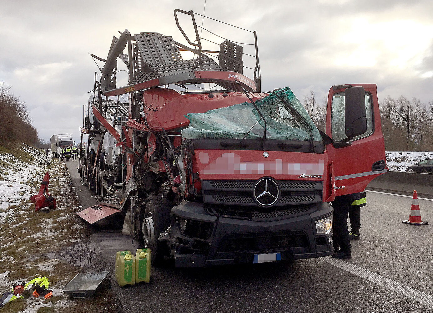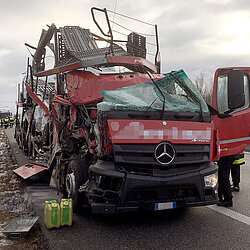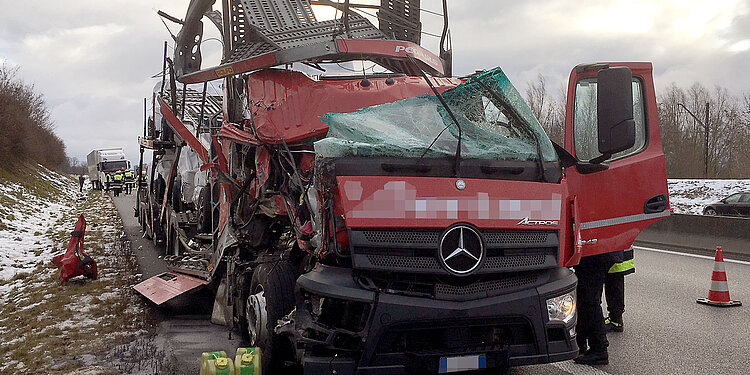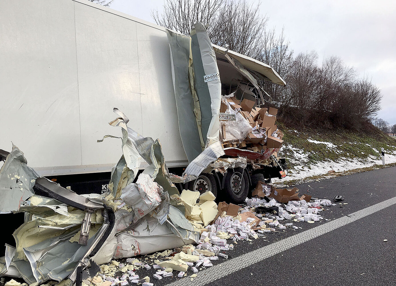 Am Vormittag des 8. Januar sind zwei Lastkraftwagen auf dem Autobahnzubringer 99 kurz vor der Auffahrt zur A8 in Fahrtrichtung Stuttgart zusammengestoßen.