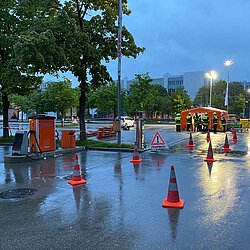 Am Freitag, 21. Mai 2021, gegen 3:50 Uhr, kam es im Bereich der Grafinger Straße zu einem Kabelbrand in einer Baugrube, in dessen Folge es zu einem großflächigen Stromausfall kam.