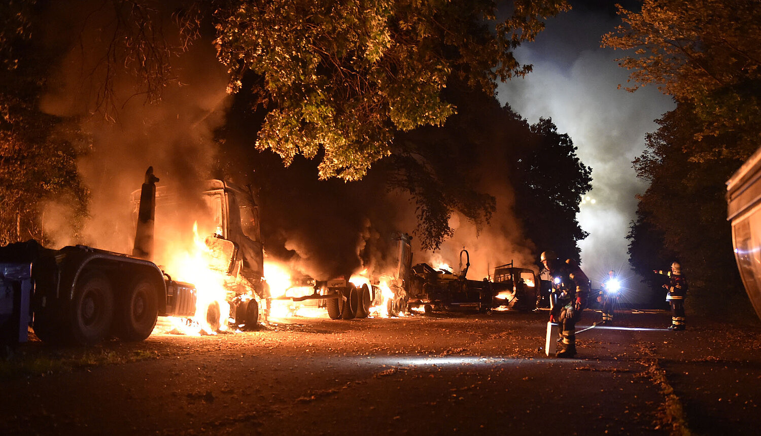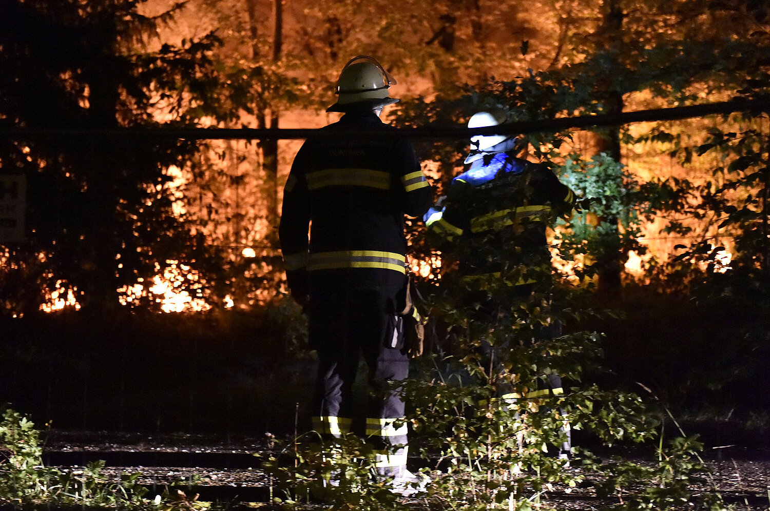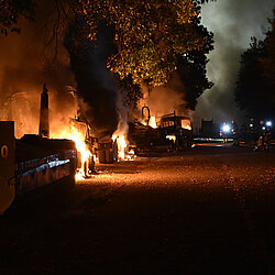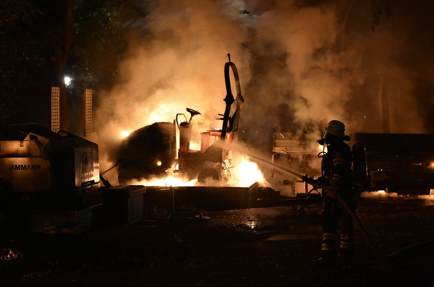 Neben einem ehemaligen Sportgelände in Obersendling haben in der Nacht mehrere hölzerne Kabeltrommeln und dort abgestellte Baufahrzeuge gebrannt.