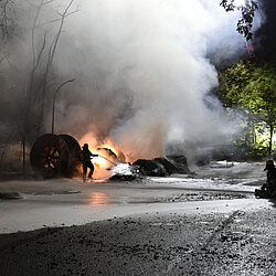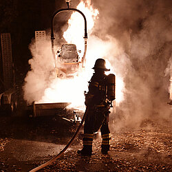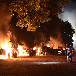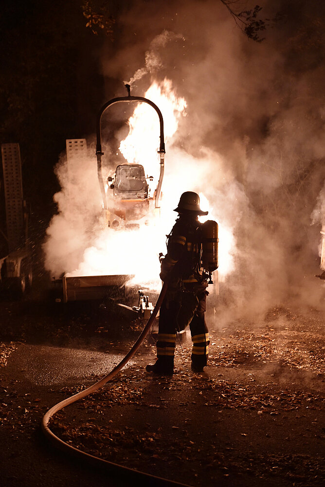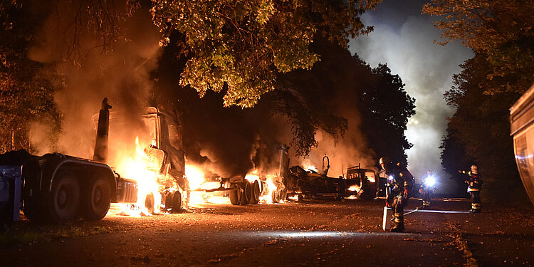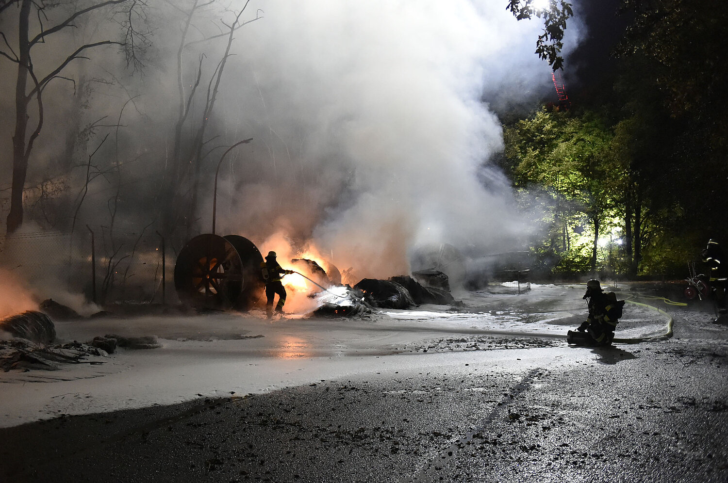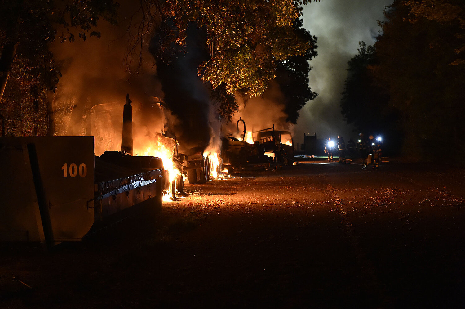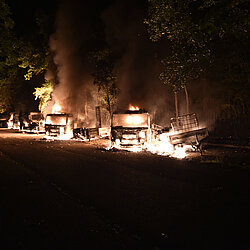 Neben einem ehemaligen Sportgelände in Obersendling haben in der Nacht mehrere hölzerne Kabeltrommeln und dort abgestellte Baufahrzeuge gebrannt.