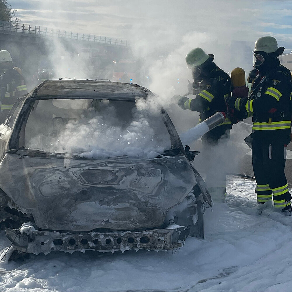 Ein Pkw ist bei einem Brand auf der Autobahn A96 Fahrtrichtung München, Höhe der Ausfahrt Germering komplett zerstört worden. Verletzt wurde glücklicherweise niemand.