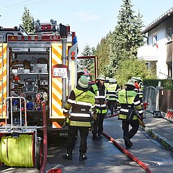Eine starke Rauchentwicklung war schon bei der Anfahrt der Feuerwehrkräfte sichtbar und bestätigte die Schilderungen des Anrufers. Allerdings stellte sich vor Ort schnell heraus, dass nicht der Dachstuhl brennt, sondern ein Zimmer im Erdgeschoss des zweistöckigen Wohnhauses in Flammen steht.