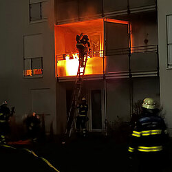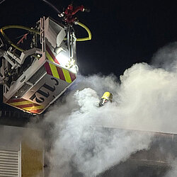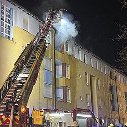 Den ersten größeren Feuerwehreinsatz mussten die Kollegen und Kolleginnen im Münchner Norden ab 21:15 Uhr abarbeiten. Hier kam es vermutlich durch eine Rakete zu einem Balkonbrand in einem Mehrfamilienhaus. Bereits beim Eintreffen der ersten Einsatzkräfte hatte sich das Feuer auf die Wohnung ausgebreitet und diese vollkommen in Brand gesetzt. Nur durch einen massiven Löschangriff mit zwei Trupps im Innenangriff und einen weiteren Trupp mit einem Löschrohr über die Drehleiter konnte ein Ausbreiten zu einem Dachstuhlbrand in letzter Sekunde verhindert werden. Durch die massiven Flammen waren bereits Dachbalken angebrannt. Zur Kontrolle der Dachhaut musste diese in Teilen von außen geöffnet werden. Weitere nachalarmierte Einheiten kontrollierten die angrenzenden Wohnungen. Mit mehreren Hochleistungslüftern wurde das Mehrfamilienhaus entraucht. Glücklicherweise konnten sich alle Bewohner rechtzeitig in Sicherheit bringen.