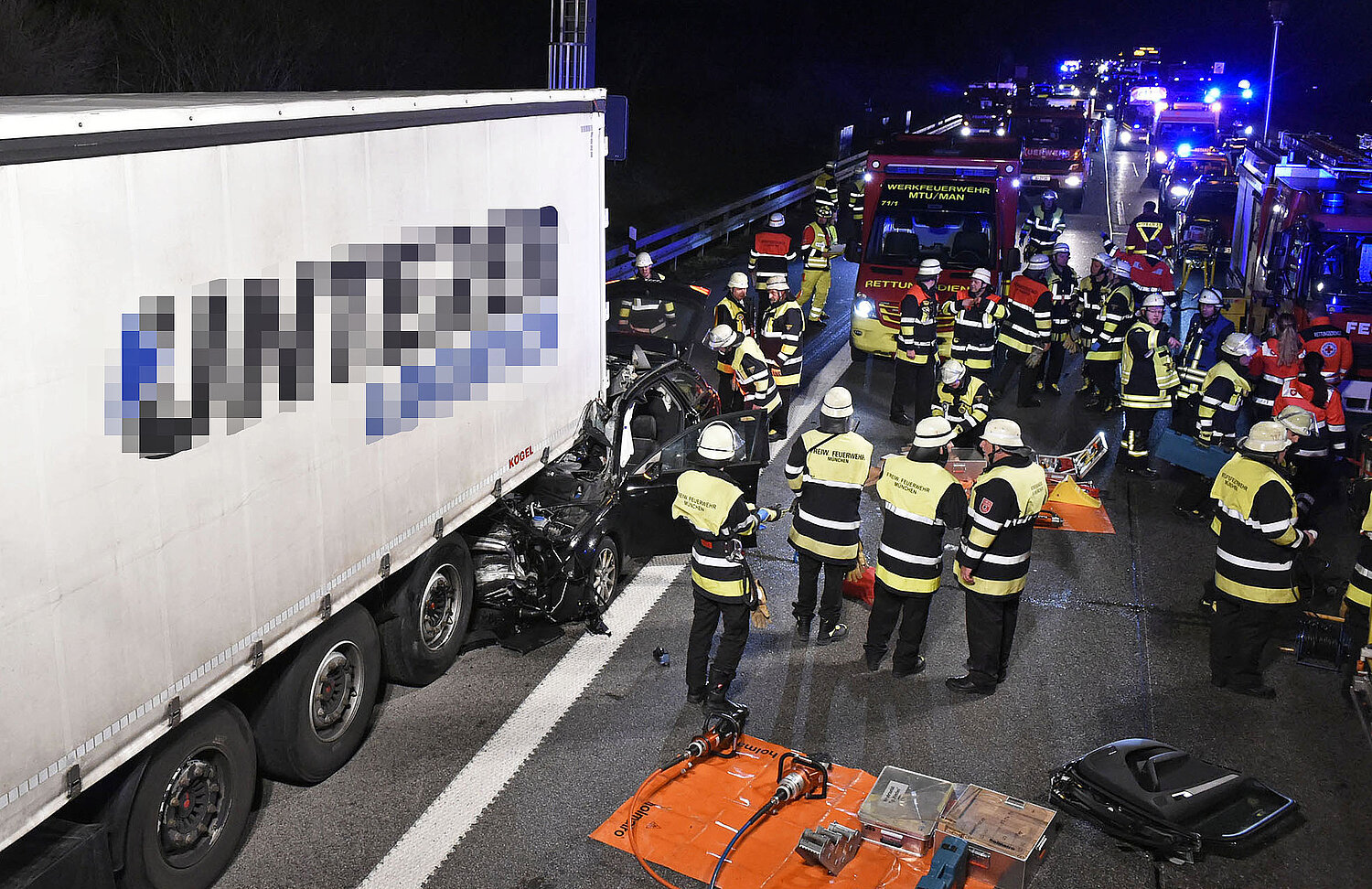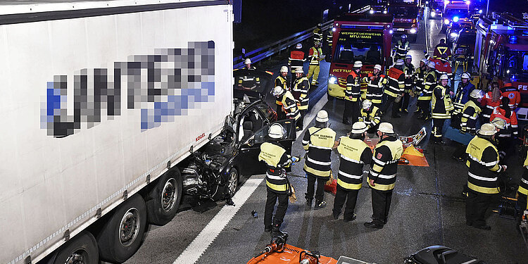 Verkehrsunfall zwischen Lkw und Pkw auf der A8