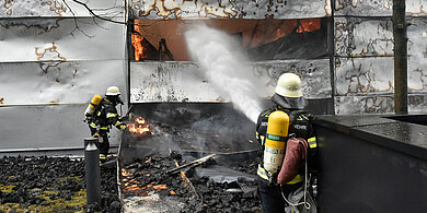 | Bei einem Brand in einer Autowerkstatt in der Albert-Roßhaupter-Straße wurde am frühen Nachmittag ein 53-jähriger und ein 36-jähriger Mann jeweils leicht verletzt.