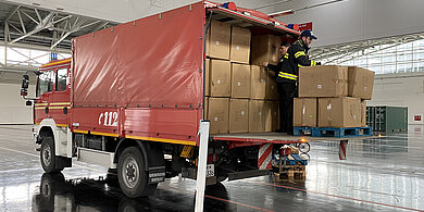 | Im März rief der Deutsche Feuerwehrverband (DFV) zu einer Feuerwehr-Spendenaktion zugunsten der Ukraine auf, bei der sich auch der Landesfeuerwehrverband Bayern (LFV Bayern) beteiligte. Aus München waren zwei Fahrzeuge dabei.