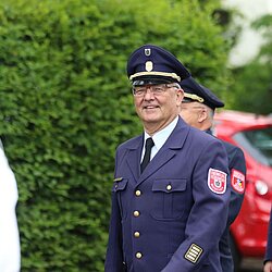 Nach der Ankunft des Umzugs zurück am Gerätehaus konnte dann auch der ökumenische Gottesdienst in der Fahrzeughalle pünktlich beginnen. Bei dieser Gelegenheit wurde auch ein Jugend-Wimpel geweiht, welcher ein sehr besonderes Geschenk unserer Partnerfeuerwehr Waldtrudering für unsere Jugendgruppe ist.