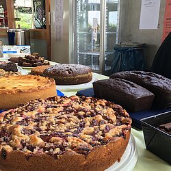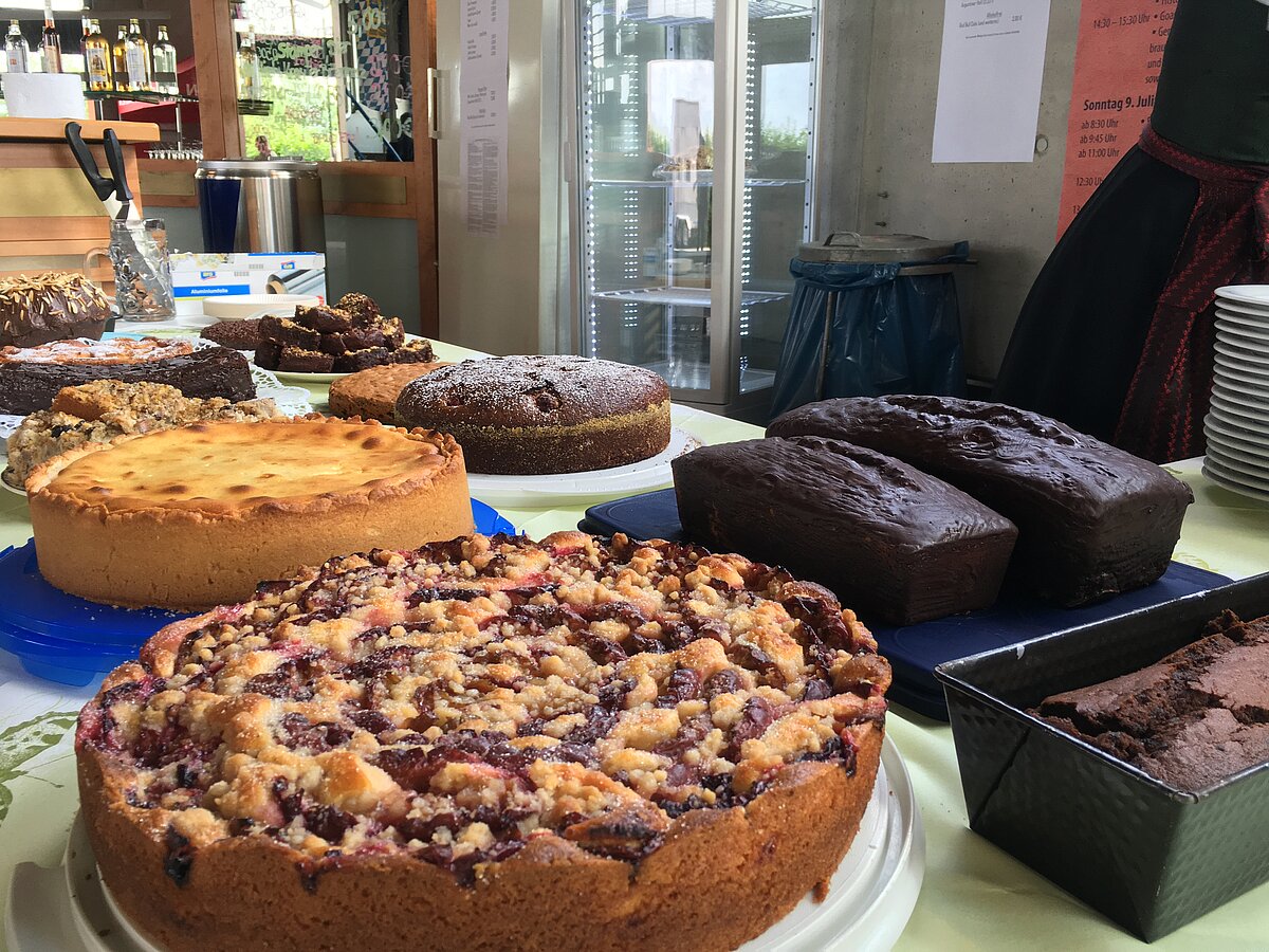 Bei Kaffee und Kuchen an unserer Bar in der Fahrzeughalle ließ sich auch der anschließende Gewitterschauer gut überstehen. Leider fiel dadurch der kurz zuvor begonnene Auftritt der Blaskapelle Harmonie ins Wasser. Diese waren aber auch am Sonntag dabei und begleiteten den Festumzug sowie den Gottesdienst.