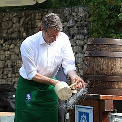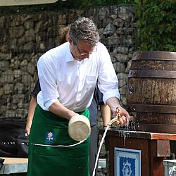 Am 8. und 9. Juli öffneten wir erneut unsere Tore für Sie und luden ein zum feierlichen Festwochenende anlässlich unseres 90-jährigen Jubiläums. Markus Blume (MdL) stach am Samstag um kurz nach 10 Uhr das erste Fass mit drei Schlägen an und eröffnete die Feierlichkeiten zum Jubiläum der Waldperlacher Feuerwehr.