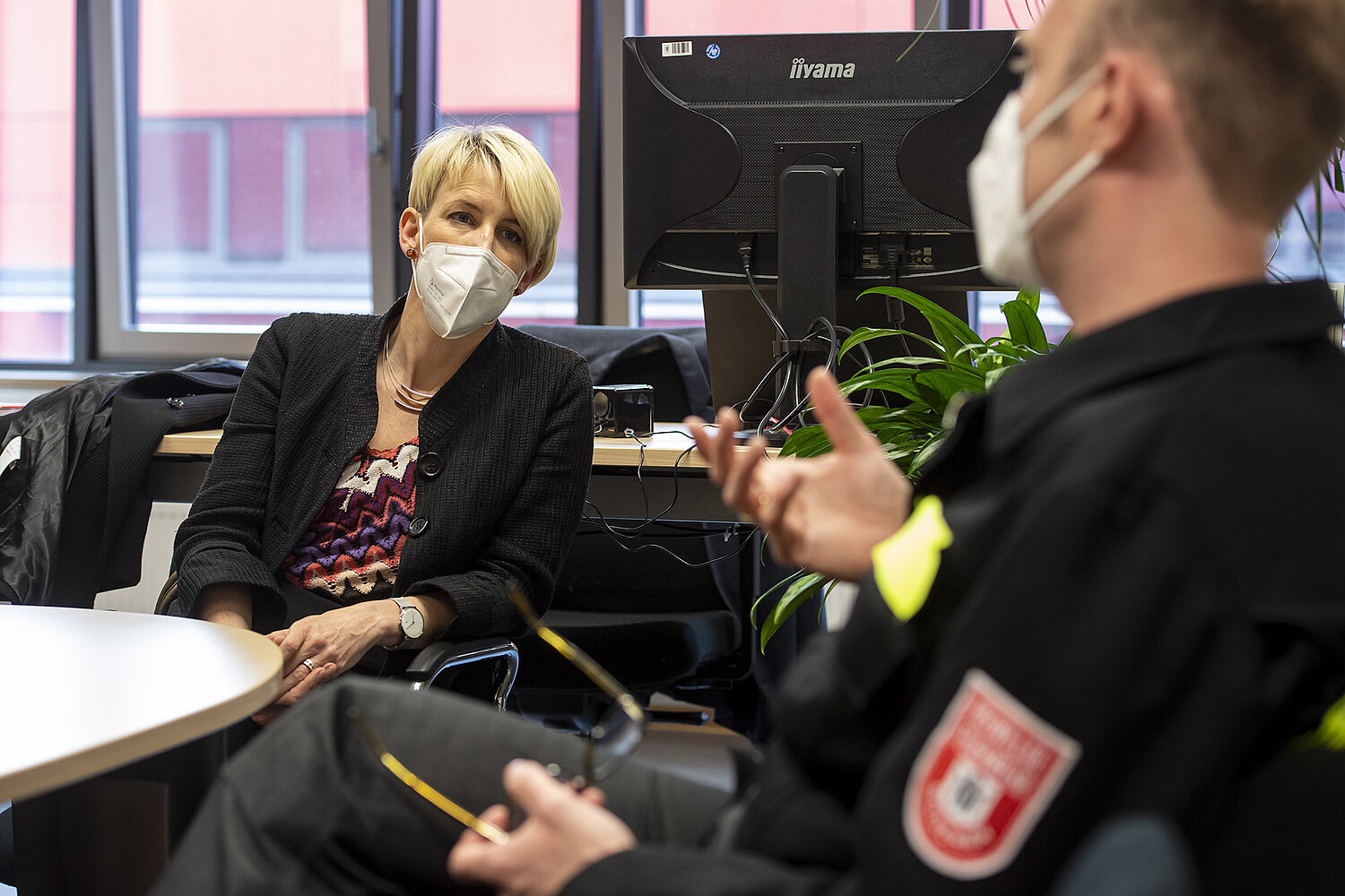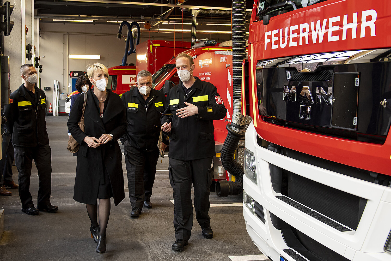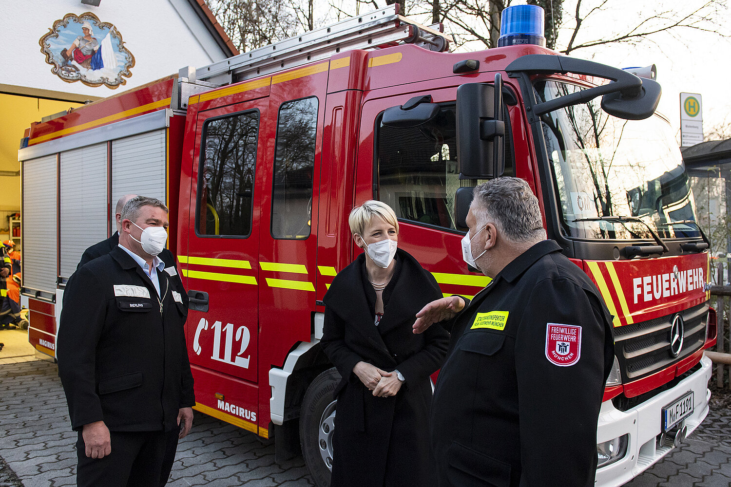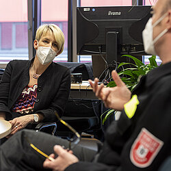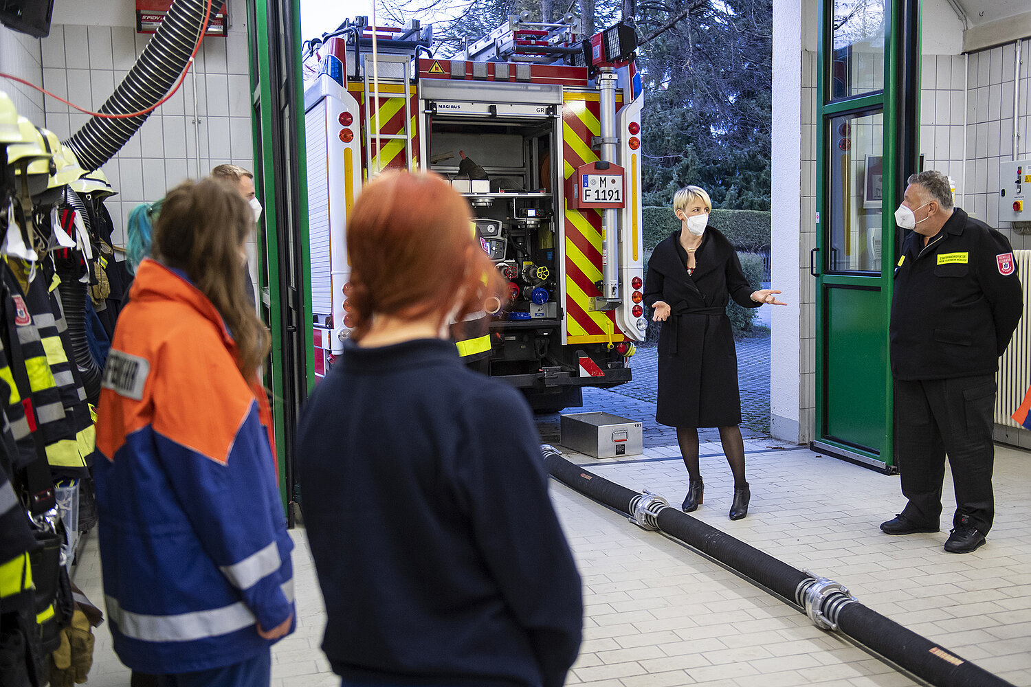 Zu einem Informationsaustausch besuchte die Zweite Bürgermeisterin Münchens Katrin Habenschaden die FF München.
