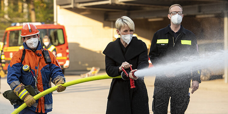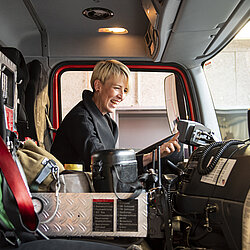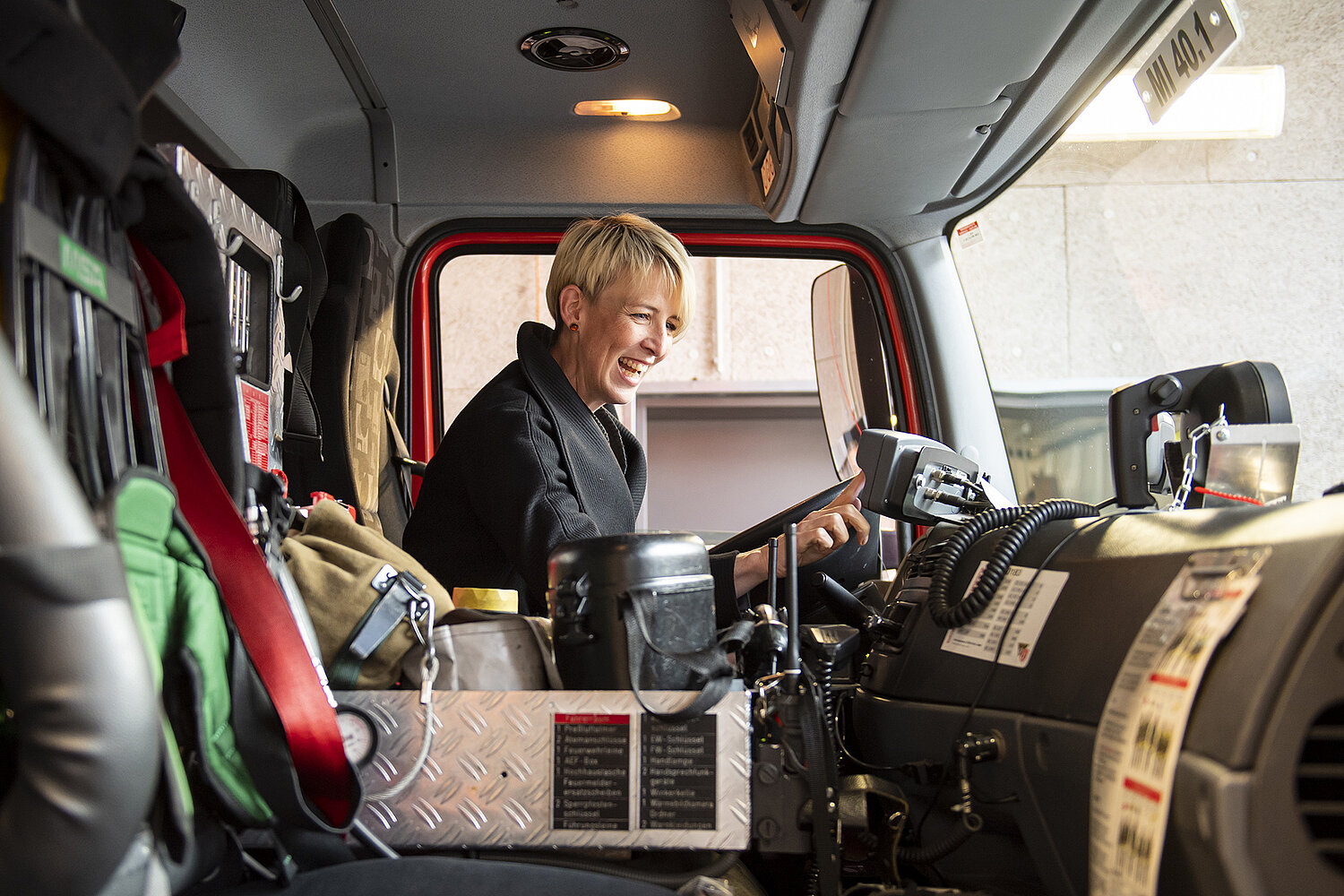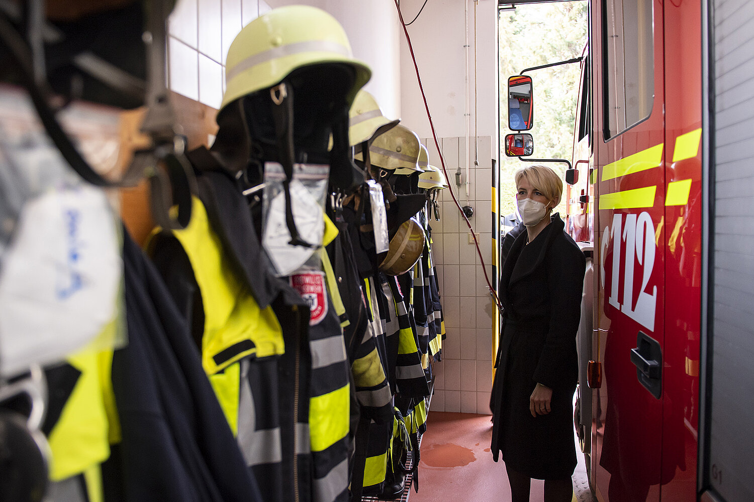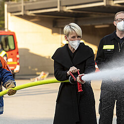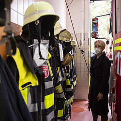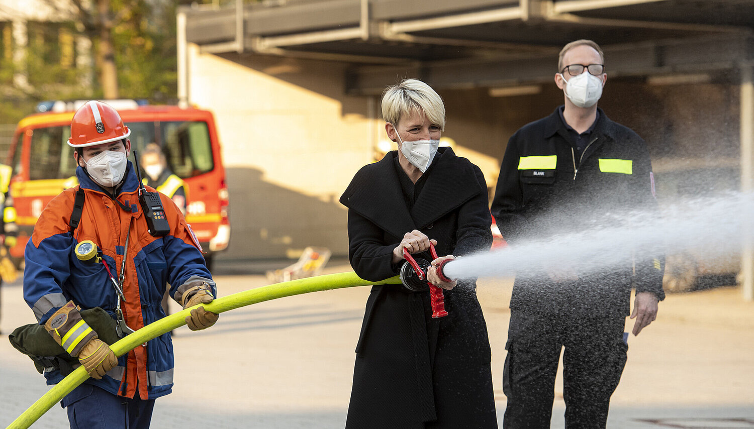 Zu einem Informationsaustausch besuchte die Zweite Bürgermeisterin Münchens Katrin Habenschaden die FF München.