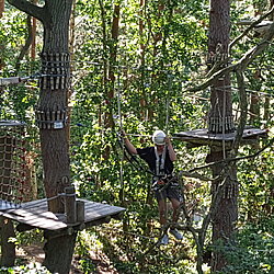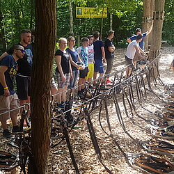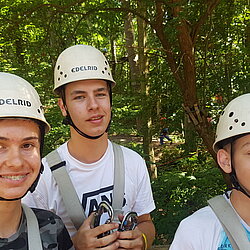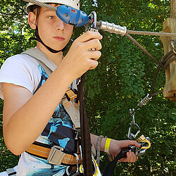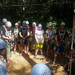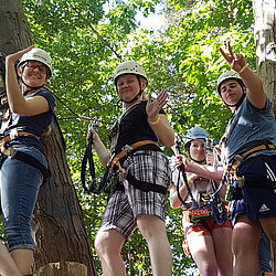 Nachmittags ging es dann weiter in den Kletterwald. Nach einer Sicherheitsunterweisung durften wir auf 12 verschiedenen Routen durch die Bäume klettern. Eine gute Vorbereitung auf den späteren aktiven Dienst in der Freiwilligen Feuerwehr München, wo wir auch häufig in großen Höhen arbeiten müssen.