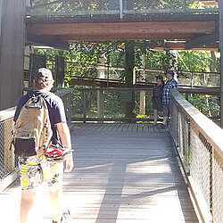 Am späten Nachmittag ging es dann noch auf den „Baumwipfelpfad“. Auf diesem 1,25 Kilometer langen Rundgang geht es auf Stegen durch die Baumkronen des Rügener Mischwaldes. Zum Abschluss kommt man auf eine Aussichtsplattform, die 82 Meter über dem Meeresspiegel liegt und kann einen tollen Rundblick über die Insel genießen.