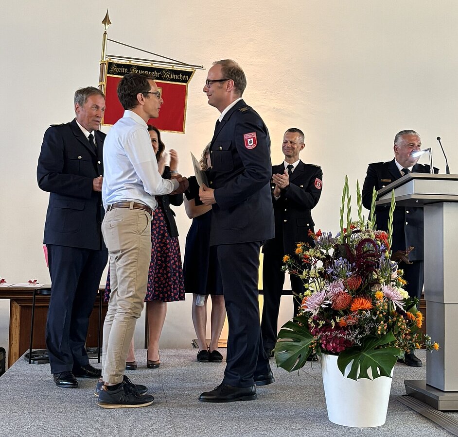 Die Stadt München hat am Abend des 23. Juli verdiente Mitglieder der Freiwilligen Feuerwehr für ihr langjähriges ehrenamtliches Engagement geehrt.