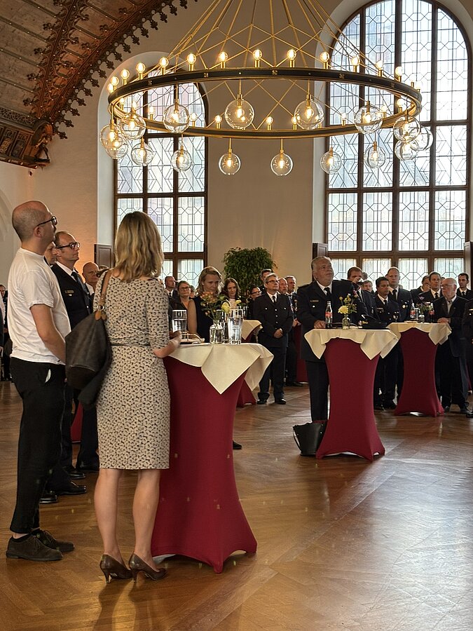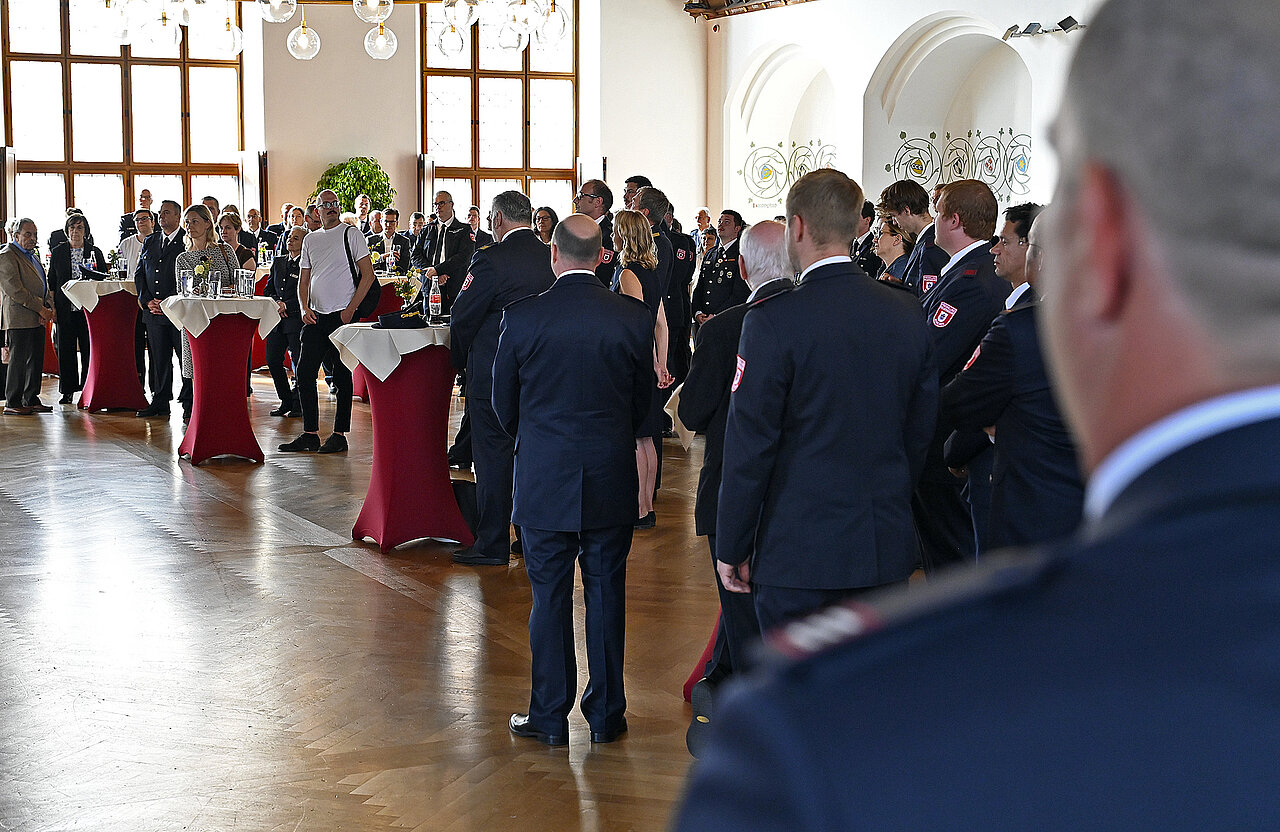 Die Ehrungen „München leuchtet“ und die Staatlichen Ehrenzeichen wurden im Foyer des Alten Rathaussaals durchgeführt werden. Insgesamt wurden 50 Mitglieder der Freiwilligen Feuerwehr München für ihre langjährige Treue und ihren Einsatz ausgezeichnet.