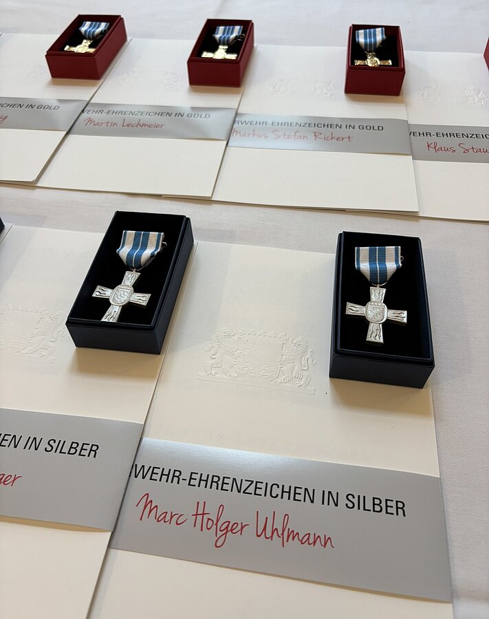 • 9 x Staatliches Ehrenzeichen erster Klasse für 40 Jahre Mitgliedschaft in einer FF Bayerns