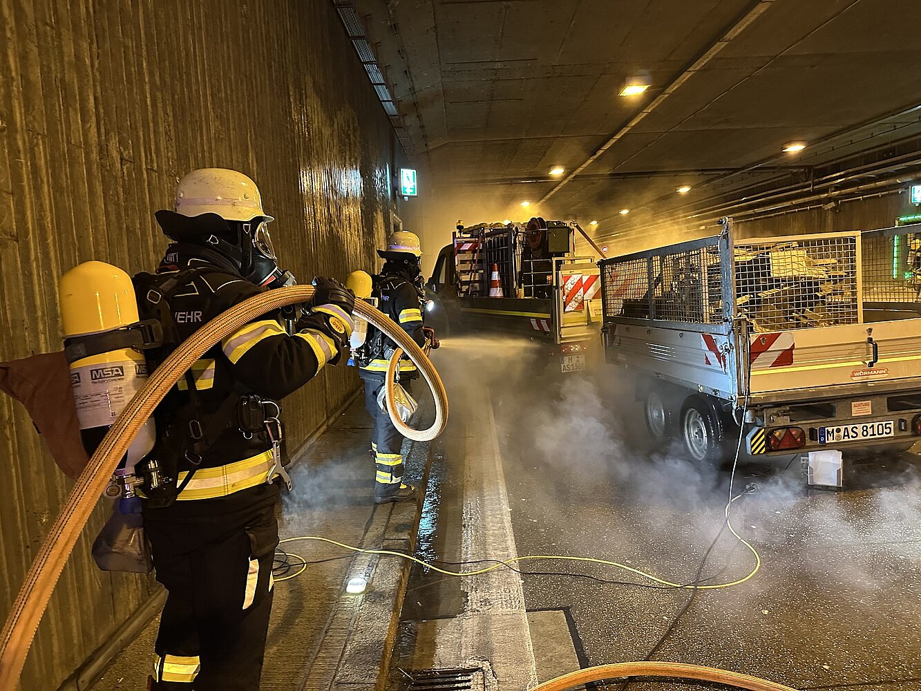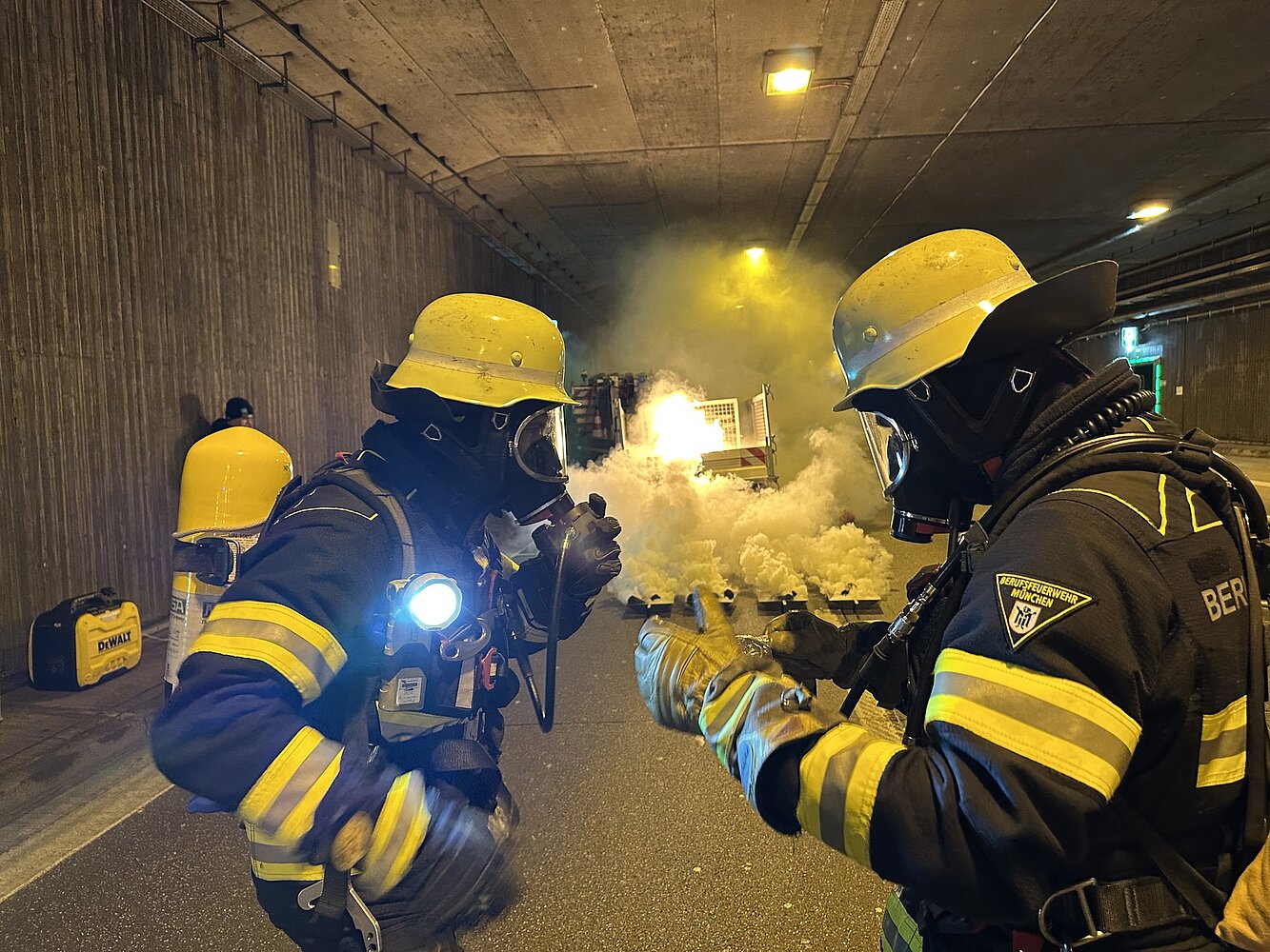In der Nacht von Freitag auf Samstag führte die Feuerwehr München eine Einsatzübung im Allacher Tunnel durch.