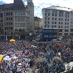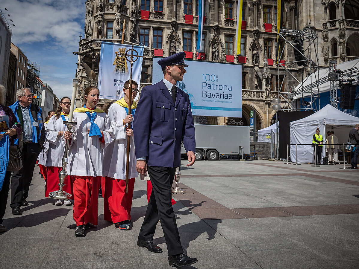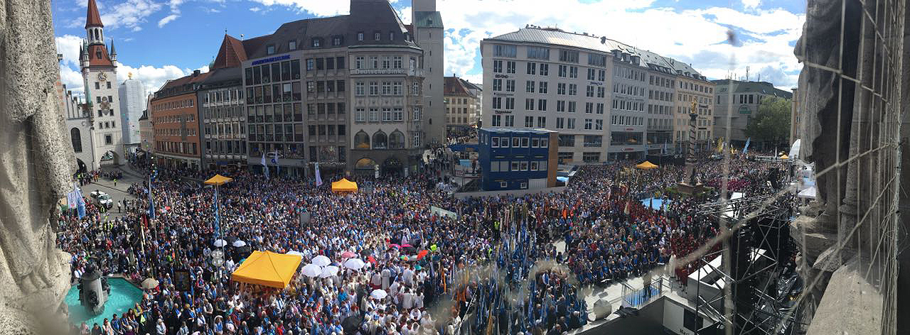In München fand nun die 2011 begonnene, mehrjährige Wallfahrt durch alle bayerischen Bistümer ihren Abschluss. Dazu kamen aus allen bayerischen Bistümern Pilgerinnen und Pilger zum symbolischen Mittelpunkt Bayerns – an die Mariensäule auf dem Marienplatz. Mit dabei auch orthodoxe Christen, etwa 700 Ministranten und viele Trachtler.