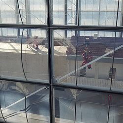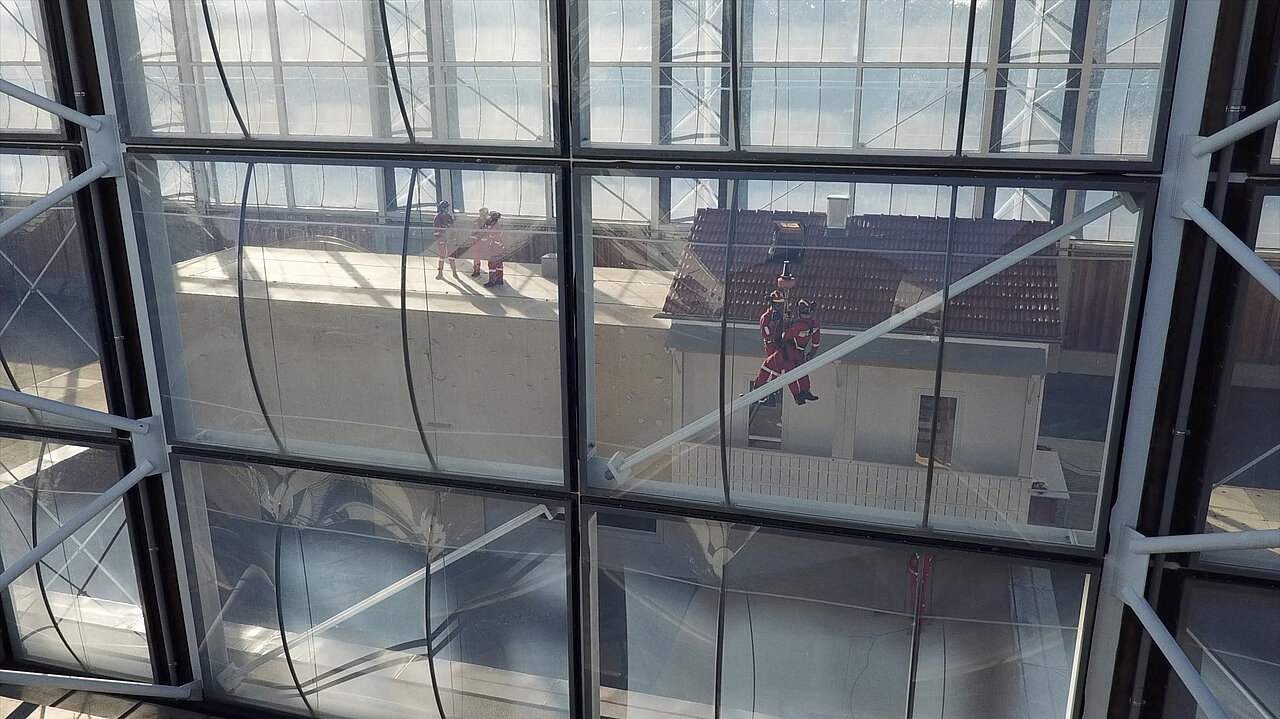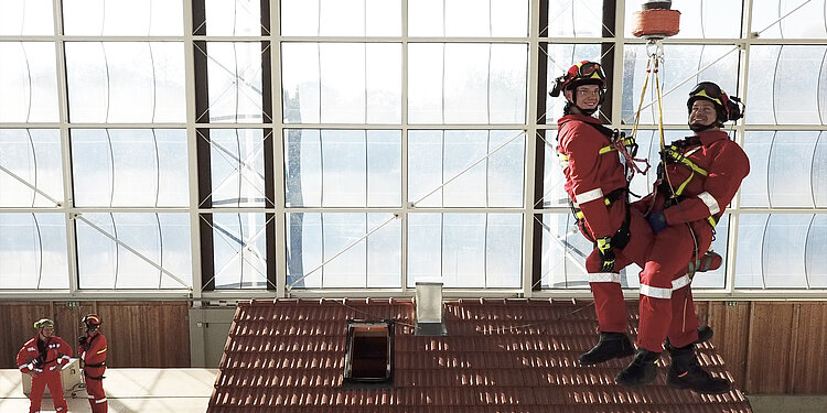 In dieser Hinsicht ist es dann doch nicht so wie im Flugsimulator: Im ZSA hängen die Feuerwehrmänner bis zu 10 Meter über dem nicht gepolsterten Boden, die Absturzgefahr ist real und sorgt automatisch für die Anwendung der richtigen Handgriffe.
