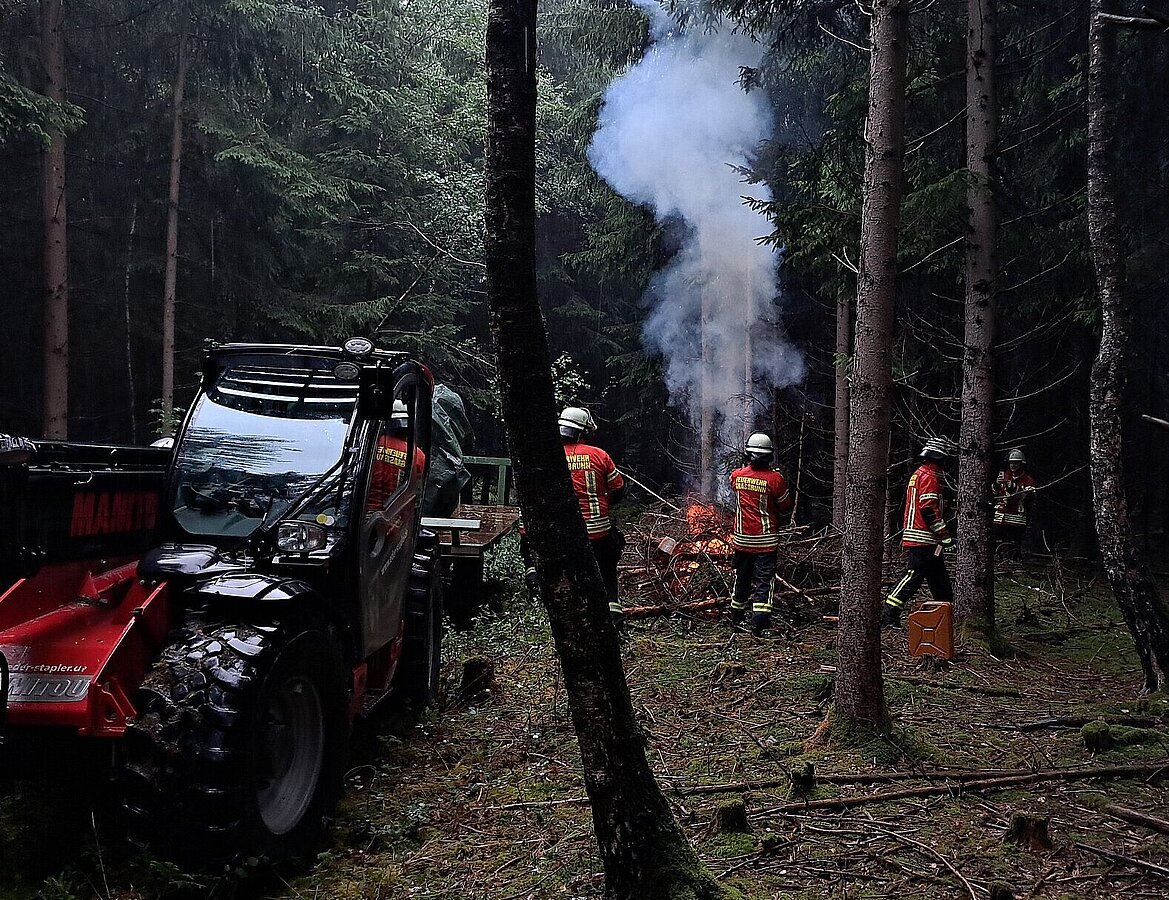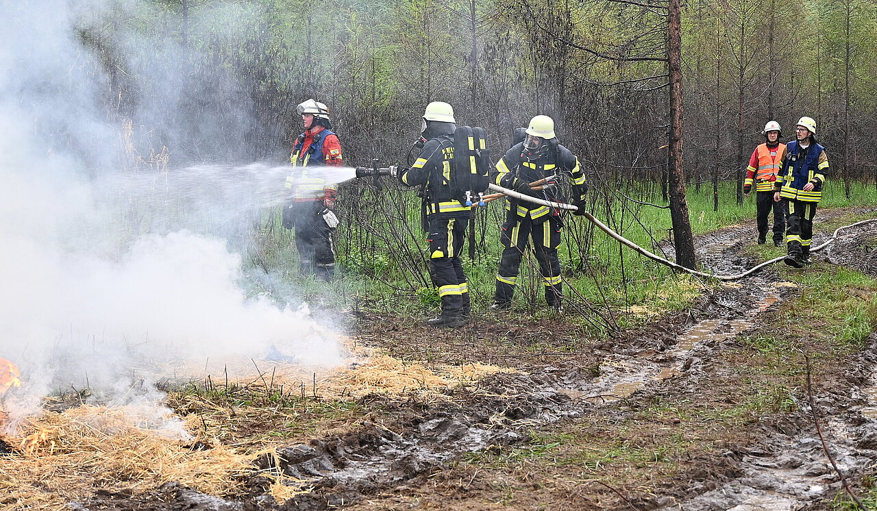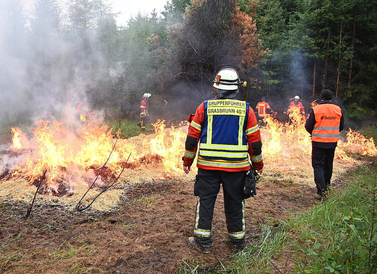 Währenddessen meldete die Übungsleitung einen Waldbrand zwischen Keferloh und Grasbrunn östlich von München. Hier kam ein Zug der FF München zum Einsatz, bestehend aus MZF, zwei KatS-LF und einem GW-L der Abteilungen Moosach, Harthof und Oberföhring sowie zwei Stadtbrandmeister als Führungspersonal. Zur Unterstützung der Einsatzleitung stand dort einer der beiden neuen ELW 2 mit Unterstützung der IuK-Gruppe und deren GW-IuK zur Verfügung.