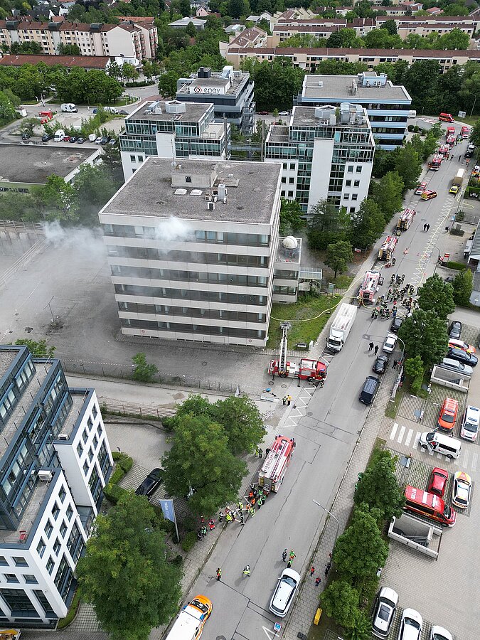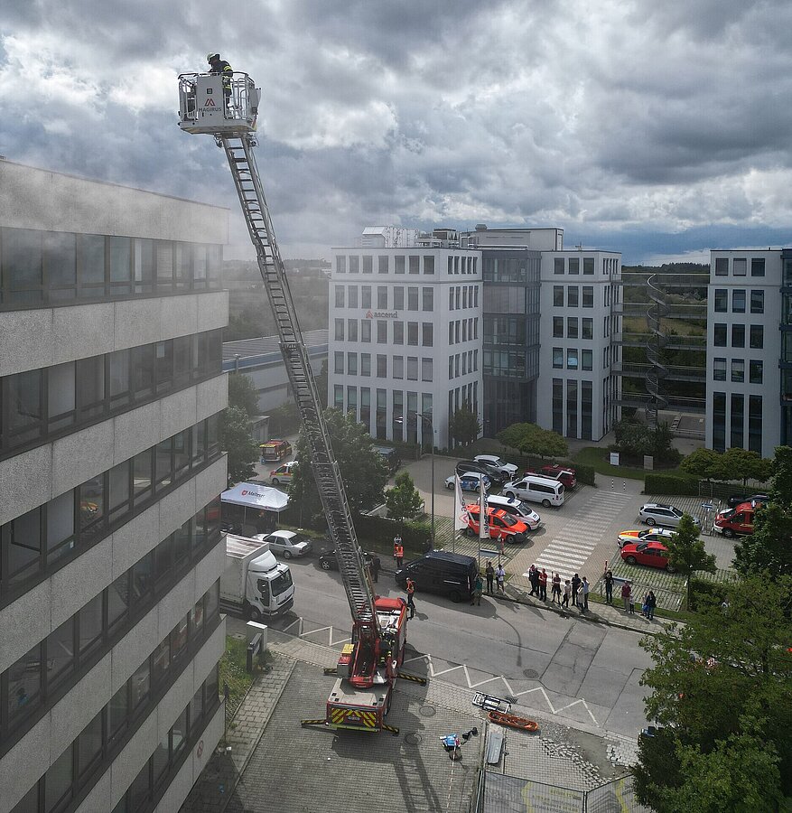 An zwei Tagen waren 100 Mitglieder an unterschiedlichen Orten rund um München gefordert. Los ging es am Samstag in Martinsried südwestlich von München, wohin Einsatzkräfte aus der Abteilung Großhadern mit einem HLF gemeinsam mit Kräften aus dem Landkreis zu einem Brand in einem weitläufigen Gebäude alarmiert wurden.