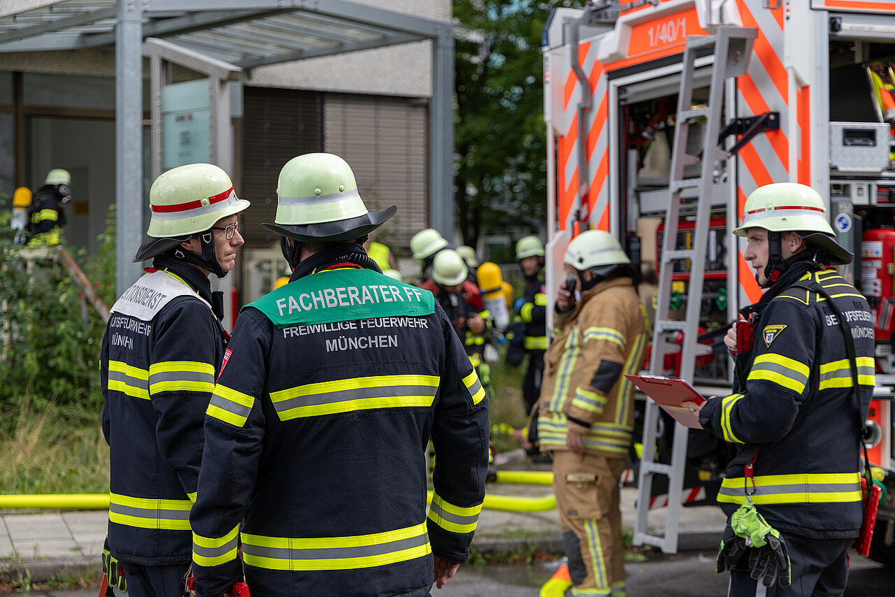 Am Sonntag wurde ein HLF der Abteilung Waldtrudering zu einem Gefahrgutunfall in Hohenbrunn alarmiert. Gleich vier Abteilungen der FF München mussten zu einem Feuer in einem hohen Haus mit 29 verletzten Personen ausrücken. Vier HLF aus den Abteilungen Solln, Forstenried, Großhadern und Sendling arbeiteten diese anspruchsvolle Übungslage ab. Führungsunterstützung bekamen sie erneut durch die IUK-Gruppe im ELW 2 und durch den EFD der FF München.
