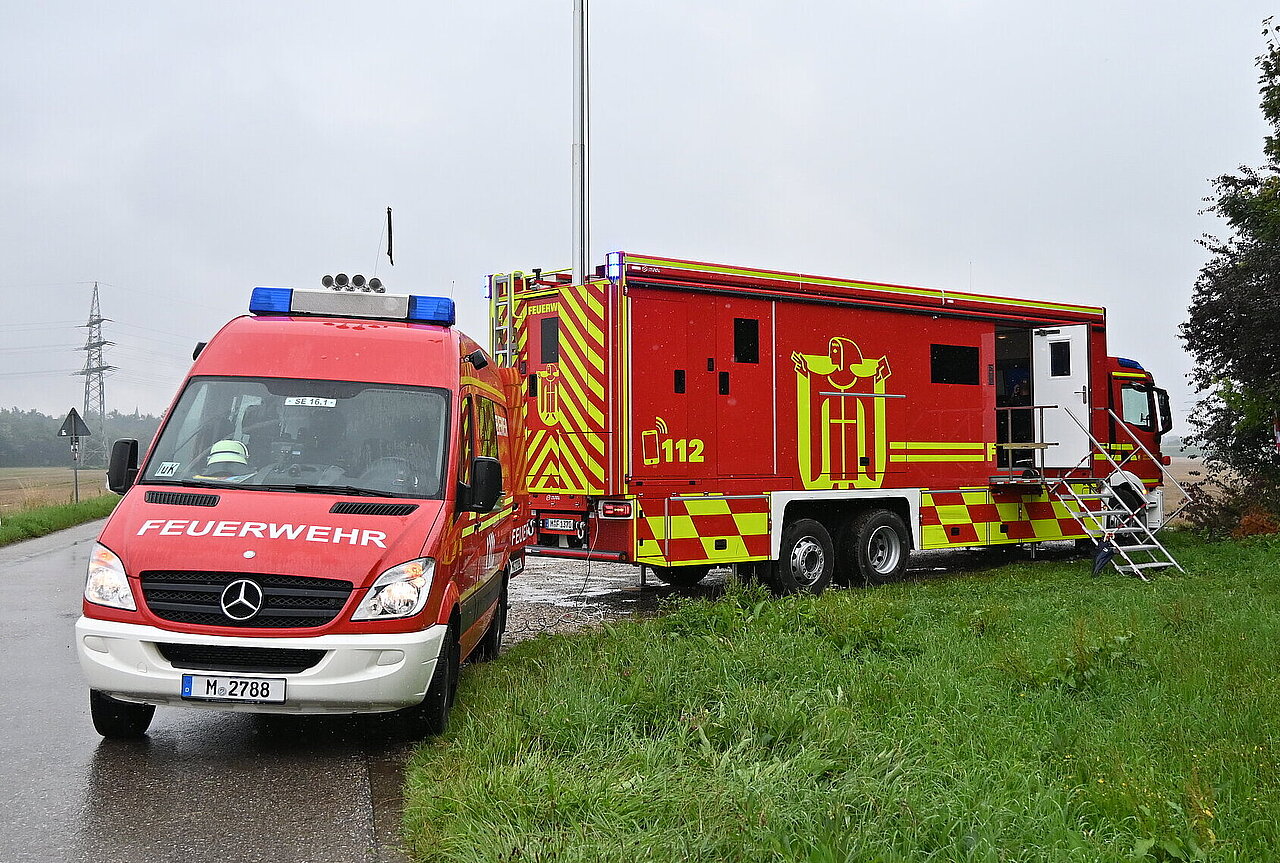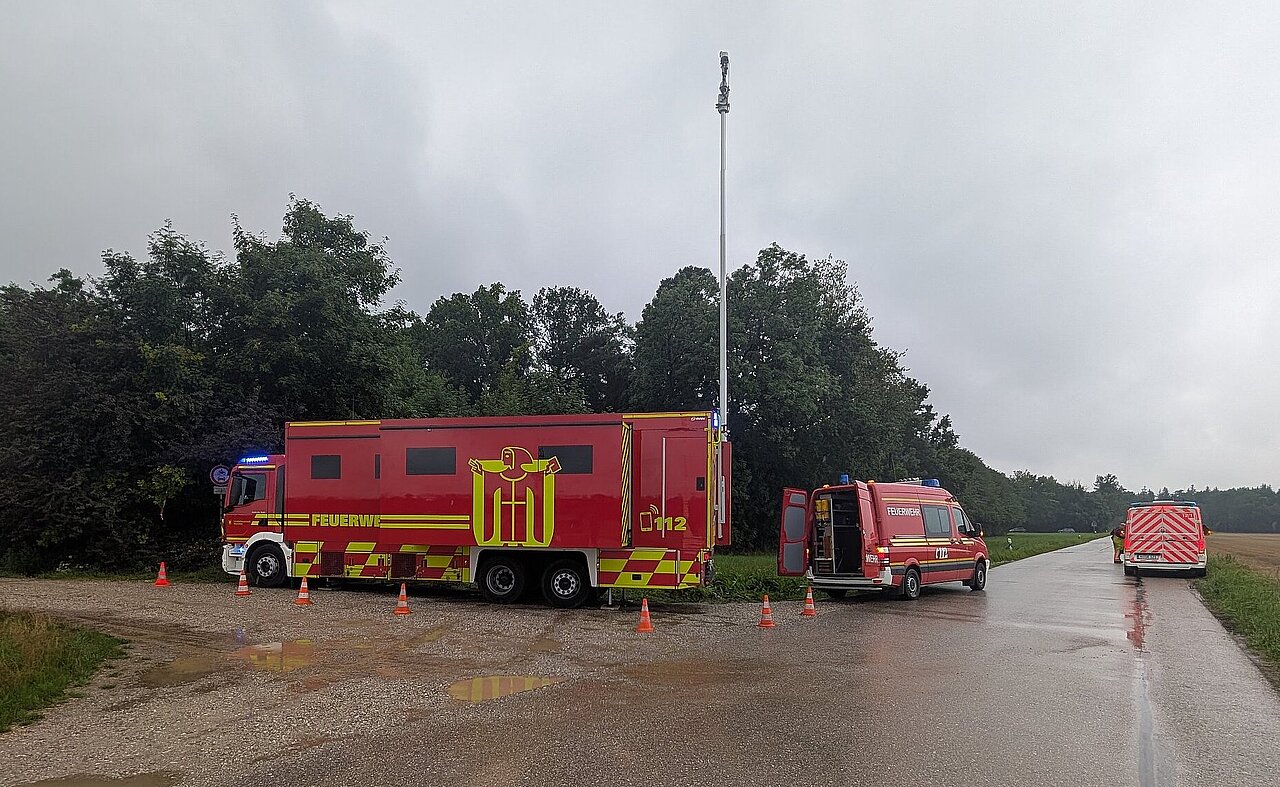 Ein völlig anderes Einsatz-Szenario bot sich den Kameradinnen und Kameraden in Aschheim, wo nach einem Verkehrsunfall ein Massenanfall von Verletzten (MANV) gemeldet wurde. Ein Zug der FF München mit einem MZF und zwei HLF aus den Abteilungen Aubing und Allach sowie die Sondereinheit Flughelfer mit Führungspersonal zur Führungsunterstützung waren dort im Einsatz.