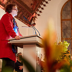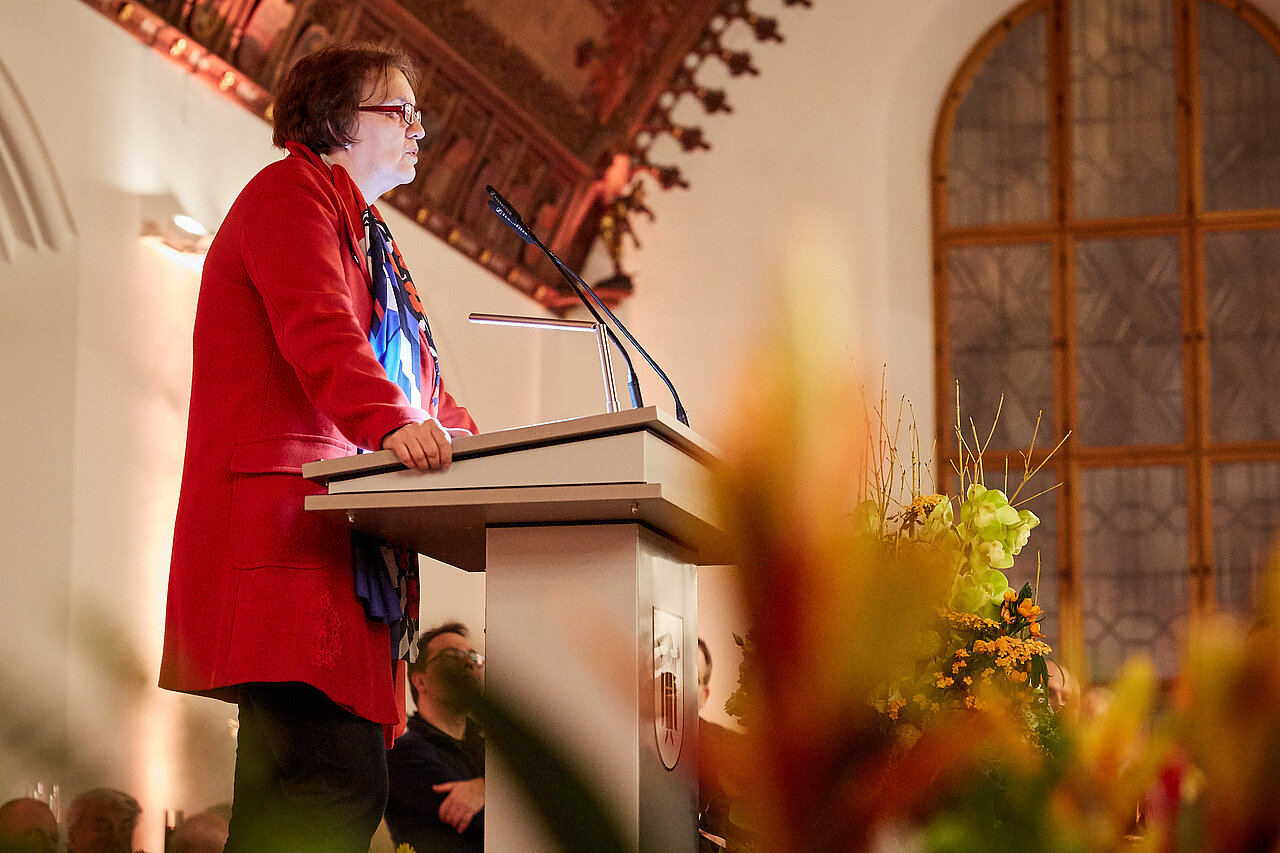 Für den erkrankten Oberbürgermeister war die dritte Bürgermeisterin, Frau Christine Strobl eingesprungen. Die Tatsache, dass sie das Redemanuskript von OB Dieter Reiter in Händen hielt, umschiffte sie perfekt: „»Mit meiner Frau war ich am Heilig Abend …« – nein, das passt jetzt nicht“, meinte Strobl zu Beginn.