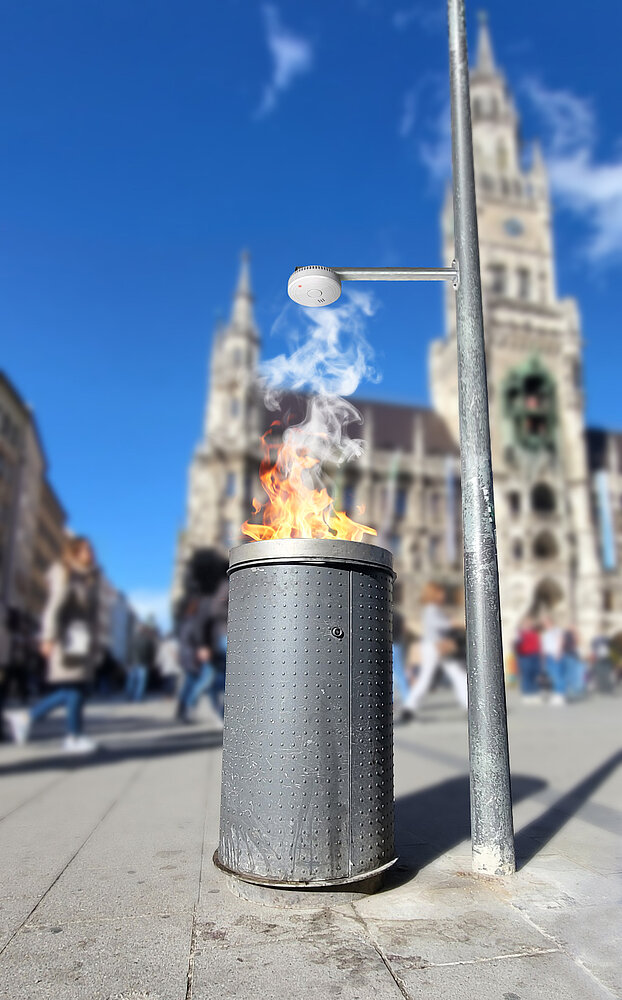 Pilotprojekt startet in München: erste Mülleimer sind bereits mit einem Rauchwarnmelder ausgerüstet.