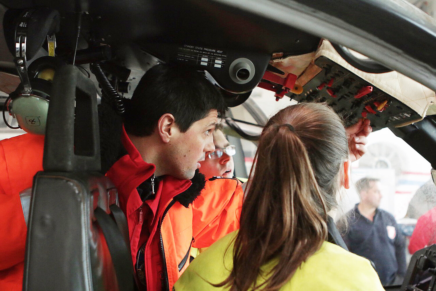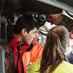 Abschließend durfte sich noch jeder Teilnehmer mal ans Steuer der EC-155 setzen um die Schalter zum Ausschalten der Batterie und zum Abschalten der Triebwerke zu betätigen.