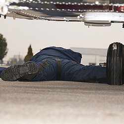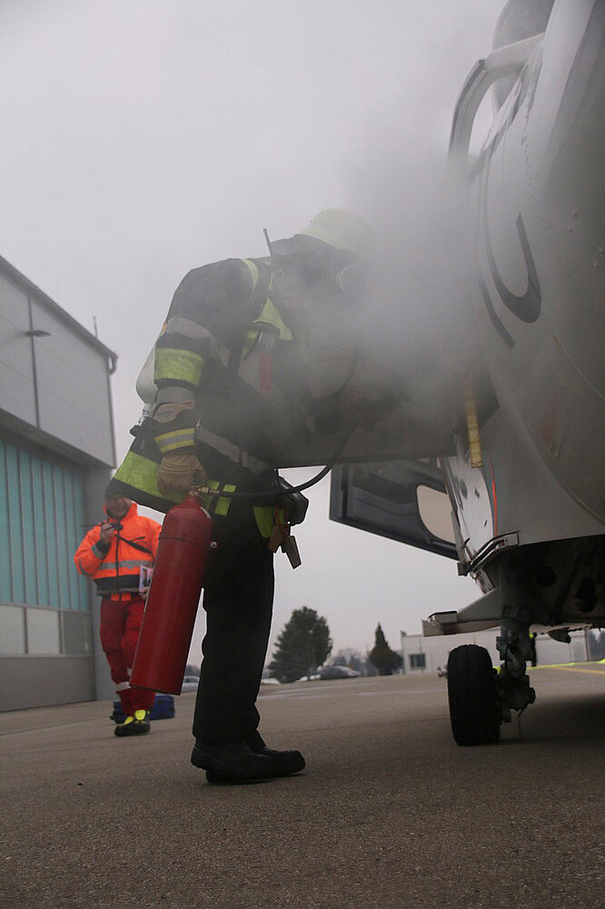Nach der Mittagspause ging es dann richtig los. Hier wurden verschiedene Brandszenarien wie Triebwerks- oder Avionikbrände beübt. Es sollten die Abläufe