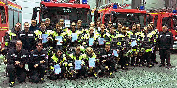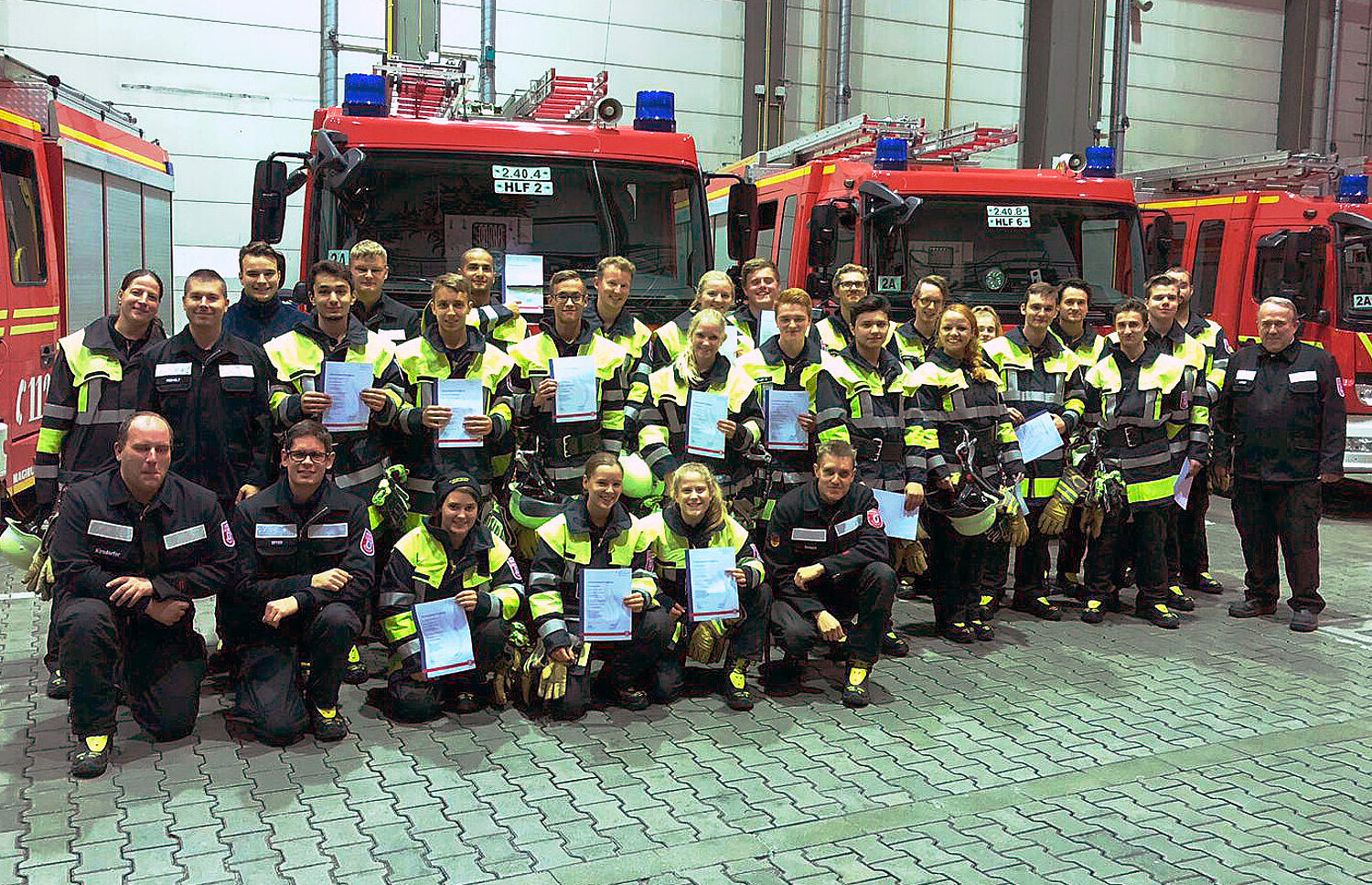 Der erste Teil der Ausbildung zum Truppmann (Sammelbezeichnung) liegt nun hinter den 21 Teilnehmerinnen und Teilnehmern. Und alle sind glücklich, nun in den Einsatzdienst starten zu können!