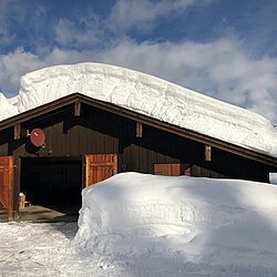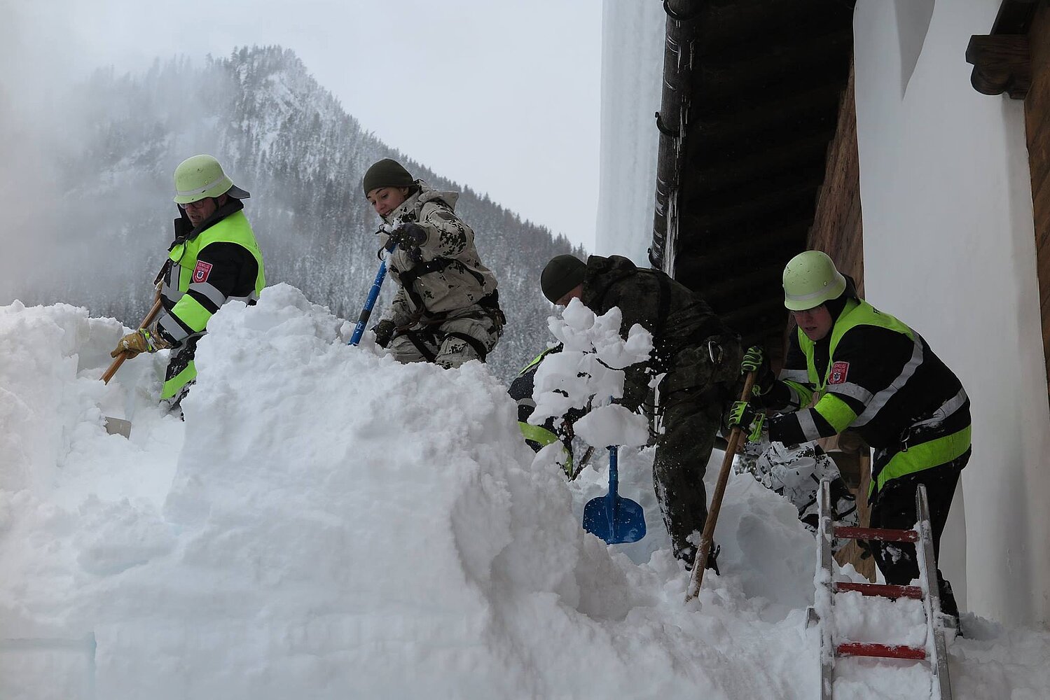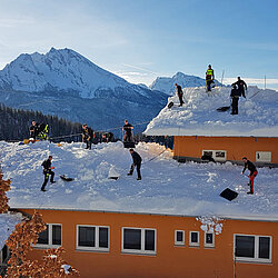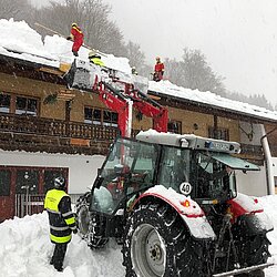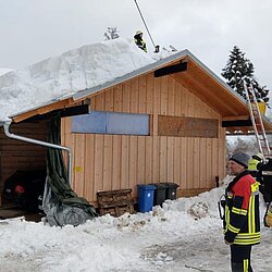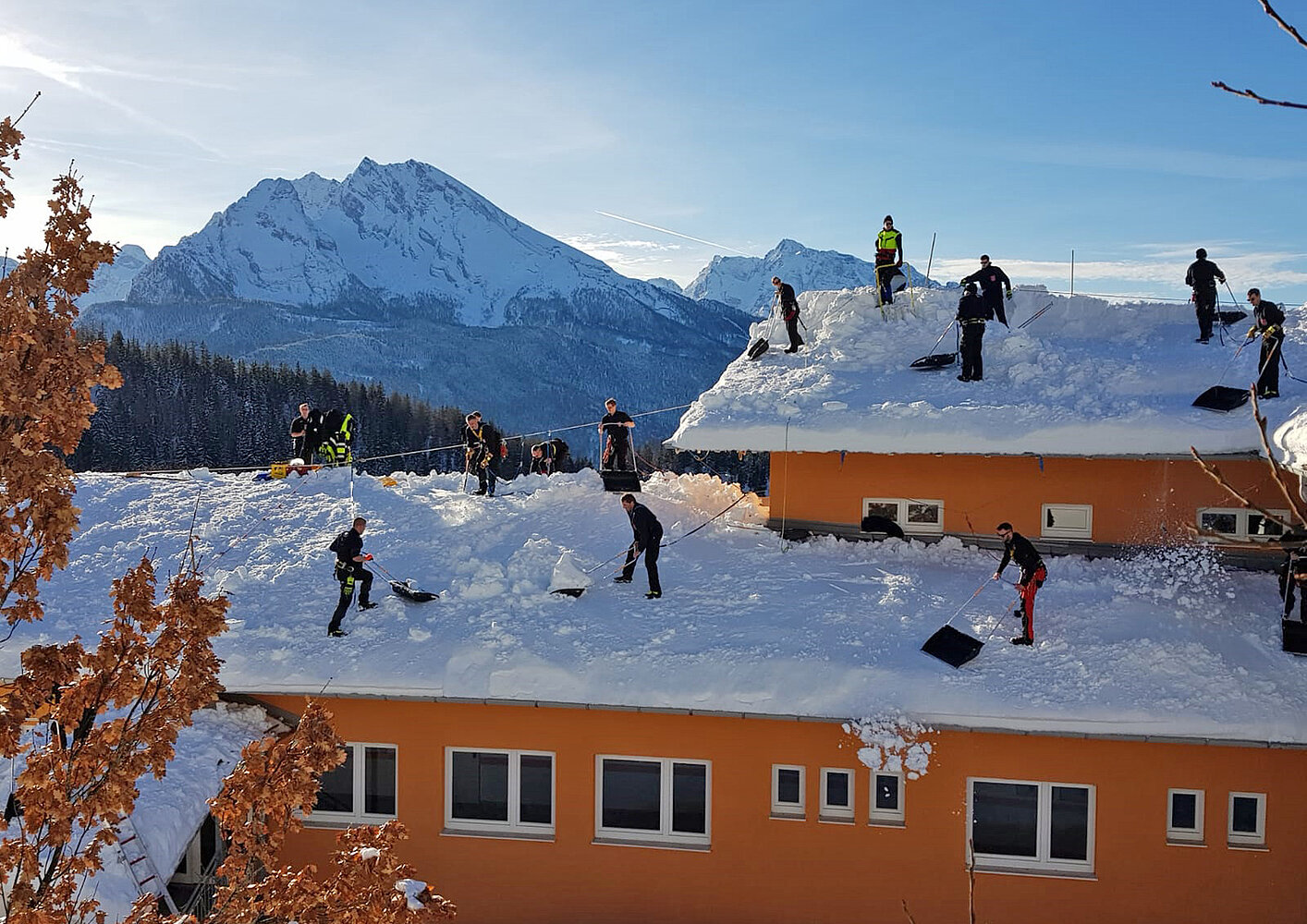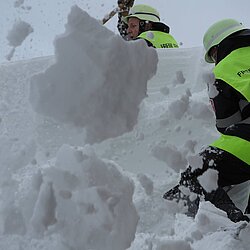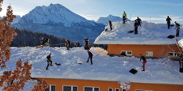 Die Feuerwehrfrauen und -männer unterstützten vor Ort vor allem die Räumung der meterdick vom Schnee bedeckten Dächer. Höhenretter der Berufsfeuerwehr sicherten die Rettungskräfte bei diesen Arbeiten.