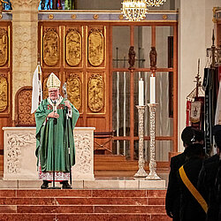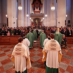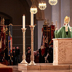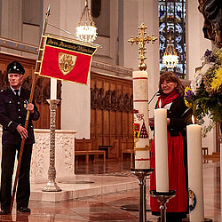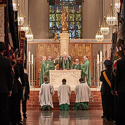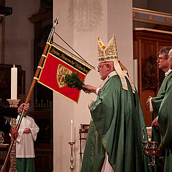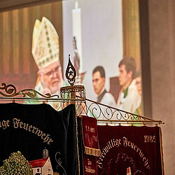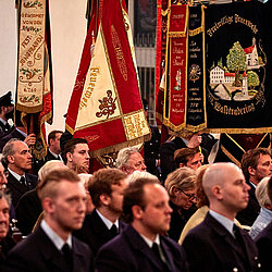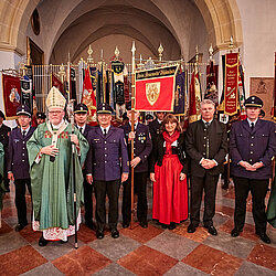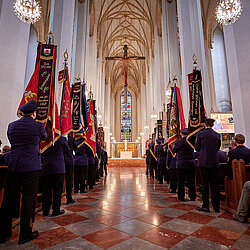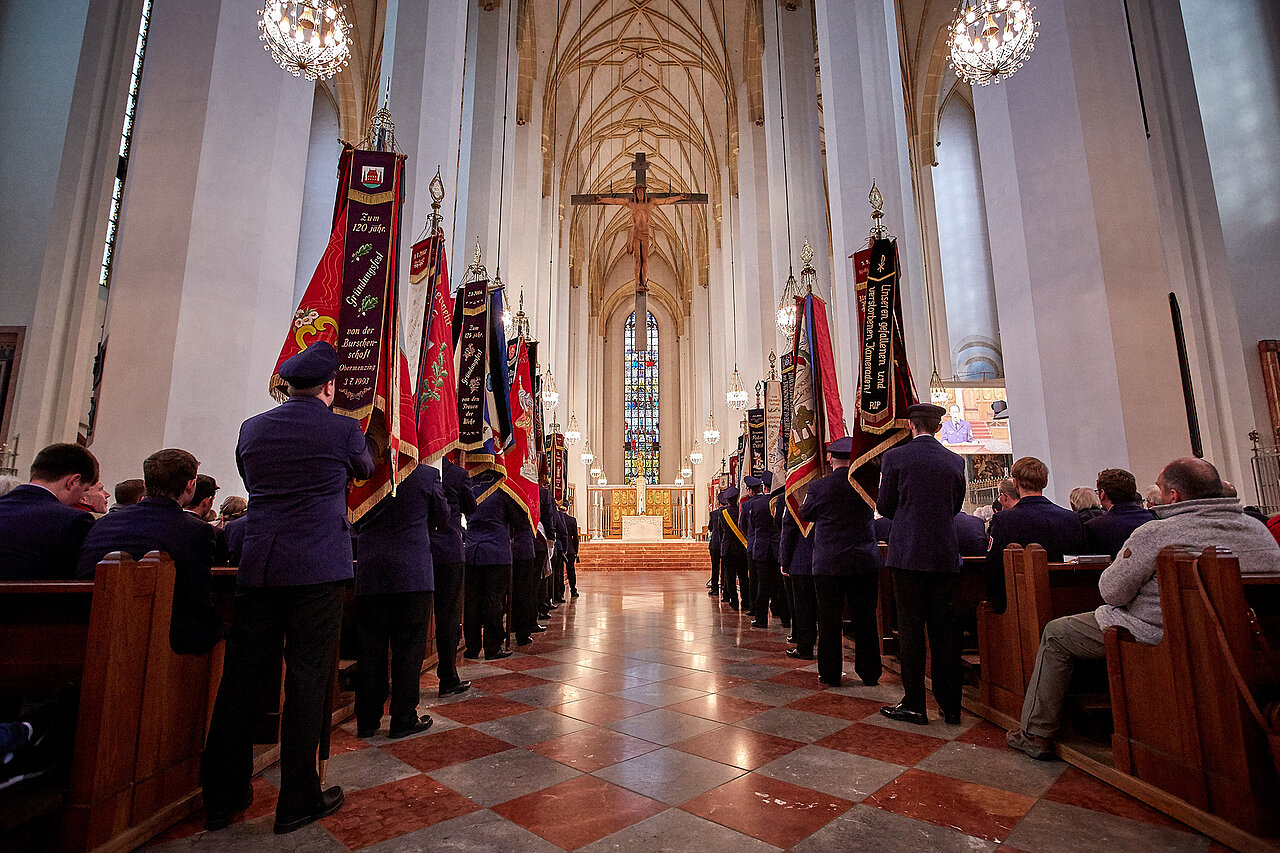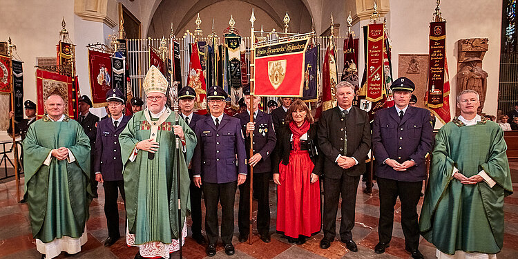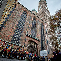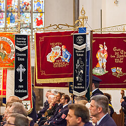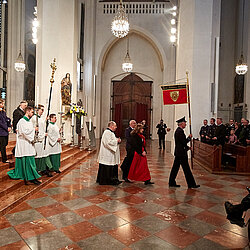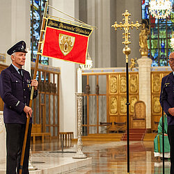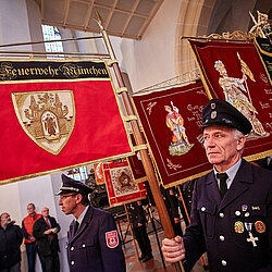 Mit einer feierlichen Bischofsmesse im Münchner Liebfrauendom fand das 150. Gründungsjubiläum der Freiwilligen Feuerwehr München einen würdigen Abschluss. Nach der Messe wurde die Replik der Original-Standarte der FF München aus dem Gründungsjahr 1866 gesegnet.
