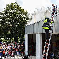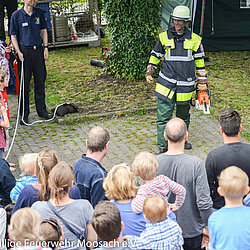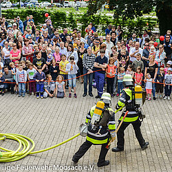 Jeder bekam die Gelegenheit, ihre Feuerwehr vor Ort einmal live zu erleben. Die Moosacher Bevölkerung interessierte sich besonders für die Ausstattung der Feuerwehrfahrzeuge bei der Fahrzeugschau und für die verschiedenen Arten der Schutzkleidung bei der „Modenschau“.