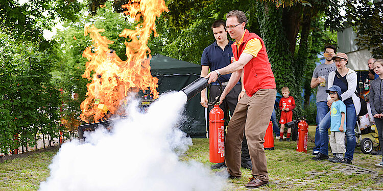 Auch die Angebote, den Umgang mit Feuerlöschern beim Feuerlöschertraining zu üben und die eigenen Erste-Hilfe-Kenntnisse aufzufrischen, wurden sehr gut angenommen. Ein besonderes Erlebnis waren die Einsatzvorführungen, die mit großem Interesse verfolgt wurden.