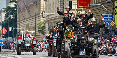 | „So viele rote Autos auf der Leopold- und Ludwigstraße gab es noch nie – und auch weltweit ist das seit dem heutigen Tag die größte Anzahl an Feuerwehr- und Einsatzautos, die es je bei einer Parade gegeben hat,“ schwärmt Rupert Saller, der Kommandant…