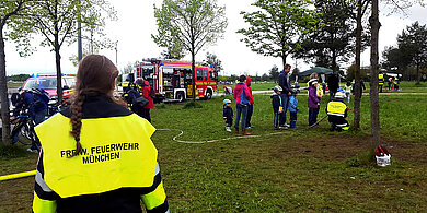 | Fahrrad fahren, an Geschicklichkeitsübungen teilnehmen, Verkehrsregeln lernen und dabei die unterschiedlichsten Vereine und Organisationen wie Feuerwehr, Polizei oder Wasserwacht kennen lernen.