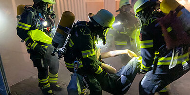 | In einer gemeinsamen Einsatzübung trainierten zwei Abteilungen im Münchner Süden die Zusammenarbeit im Brandeinsatz. Ein weiteres Ziel der Übung war ein Praxistest möglicher künftiger Ausrüstung.