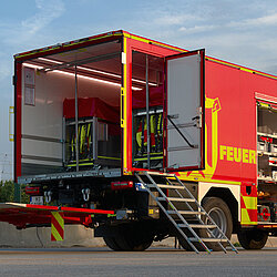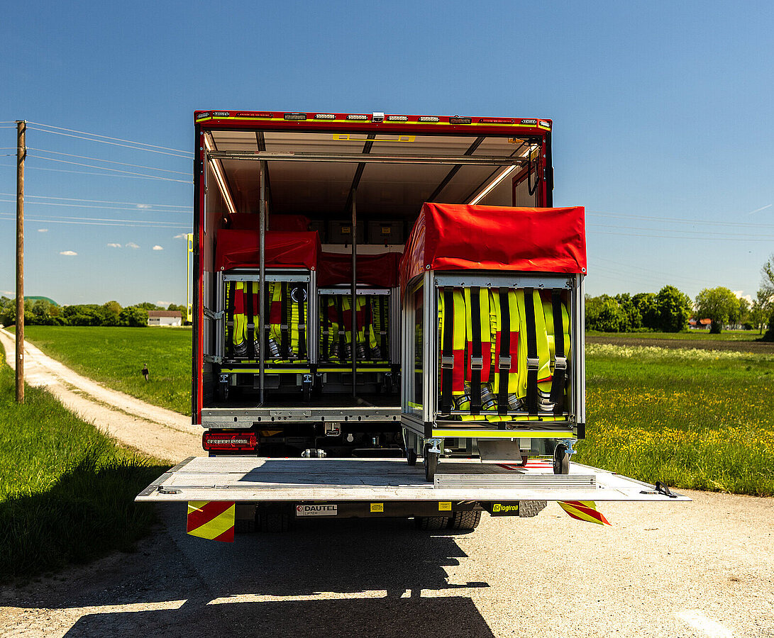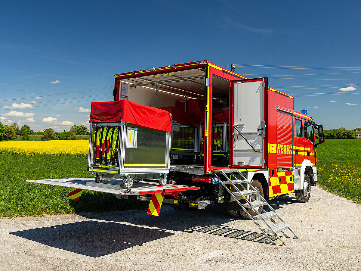 Der Gerätewagen Logistik dient hauptsächlich zum Transport von Schläuchen und Armaturen zur Wasserförderung über lange Schlauchstrecken und zu Löschwasserrückhaltung. Er ersetzt den bereits außerdienstgestellten Schlauchwagen SW 2000.