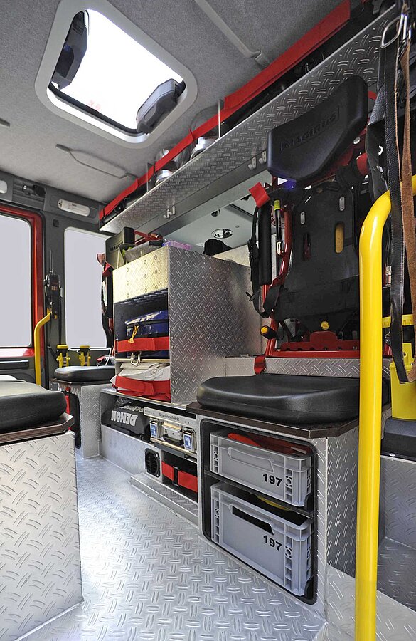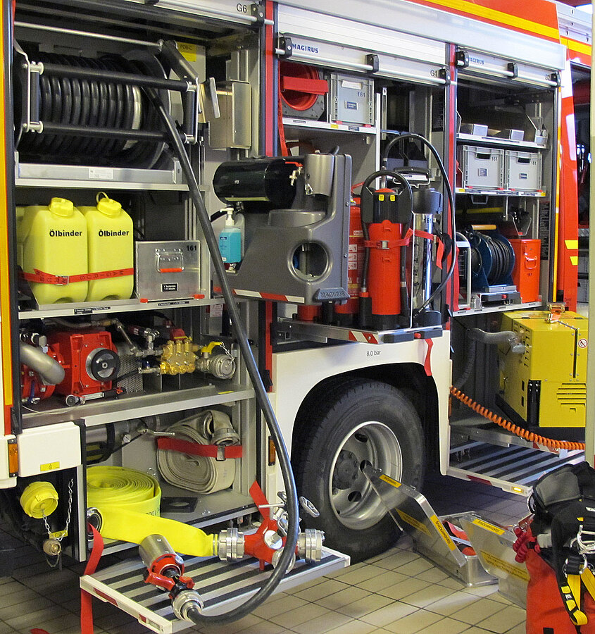 Das Fahrzeug ist mit einem 1.600 Liter fassenden Löschwassertank und einem 200-Liter-Schaummitteltank ausgerüstet. Somit kann zum Beispiel über den formstabilen, 50 Meter langen Schnellangriffsschlauch ein unmittelbarer Löschangriff wahlweise mit Wasser oder, oft effektiver, mit Schaum vorgenommen werden.Im Mannschaftsraum können bereits während der Anfahrt zur Einsatzstelle fünf umluftunabhängige Atemschutzgeräte aufgenommen werden. Dadurch können wichtige, lebensrettende Minuten gewonnen werden.