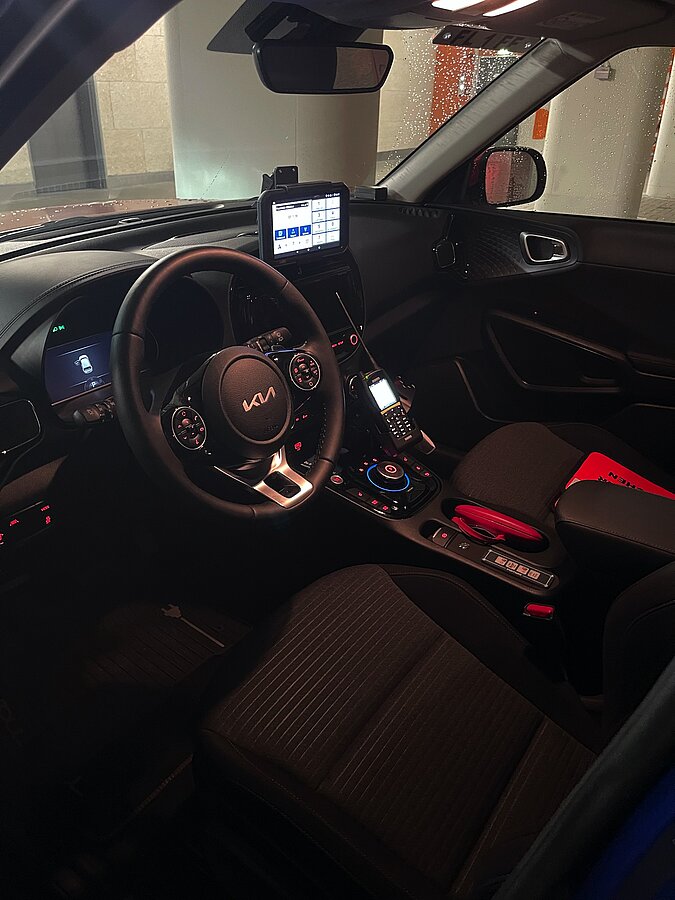 Zur Ausstattung gehört unter anderem ein Erste Hilfe-Rucksack, ein Feuerlöscher und ein Automatisierter Externer Defibrillator (AED).