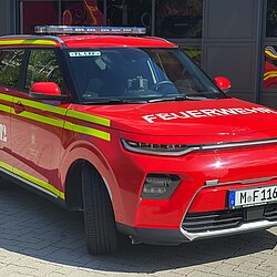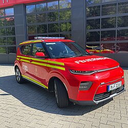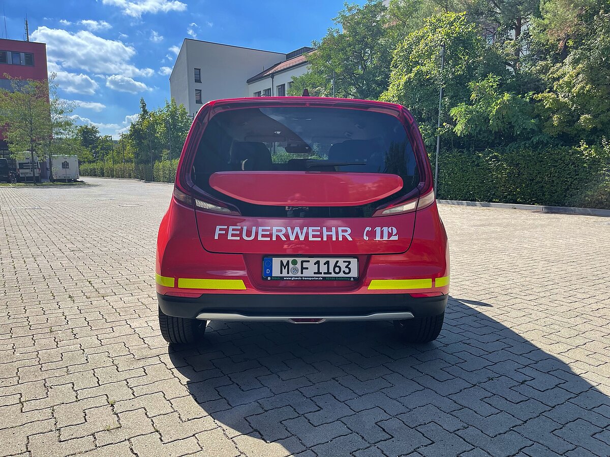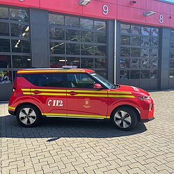 Der Stadtbrandrat fährt ein besonders Fahrzeug. Es ist rein elektrisch angetrieben und hat eine Reichweite von fast 300km.