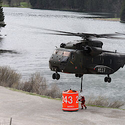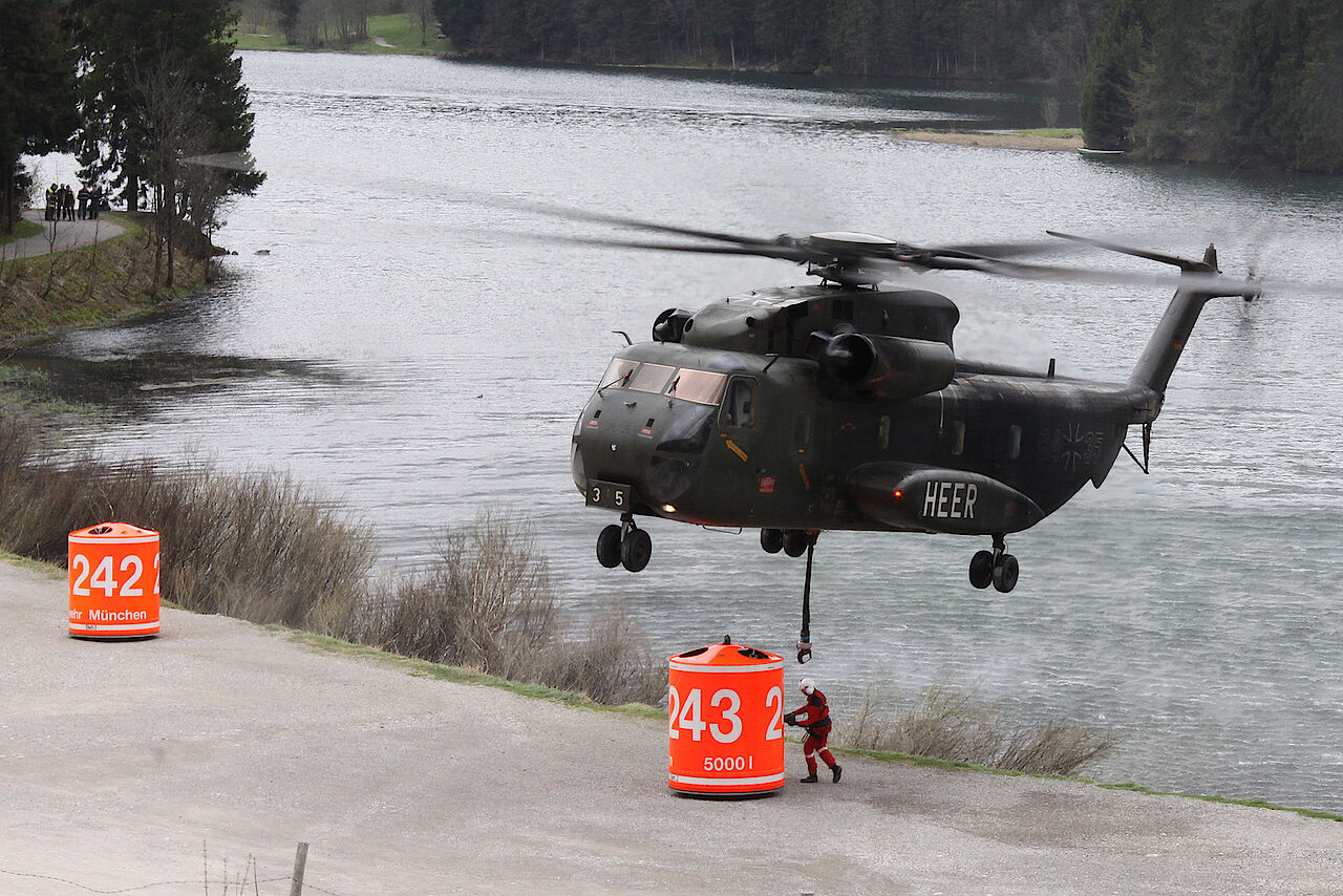 Die Löschwasserbehälter werden an Hubschrauber angehängt und dienen der Brandbekämpfung an schwer zugänglichen Stellen wie zum Beispiel im Gebirge. Das An- und Abkuppeln geschieht von Hand durch Einsatzkräfte der Flughelferstaffel, während sich der Hubschrauber wenige Meter über Grund im Schwebeflug befindet.