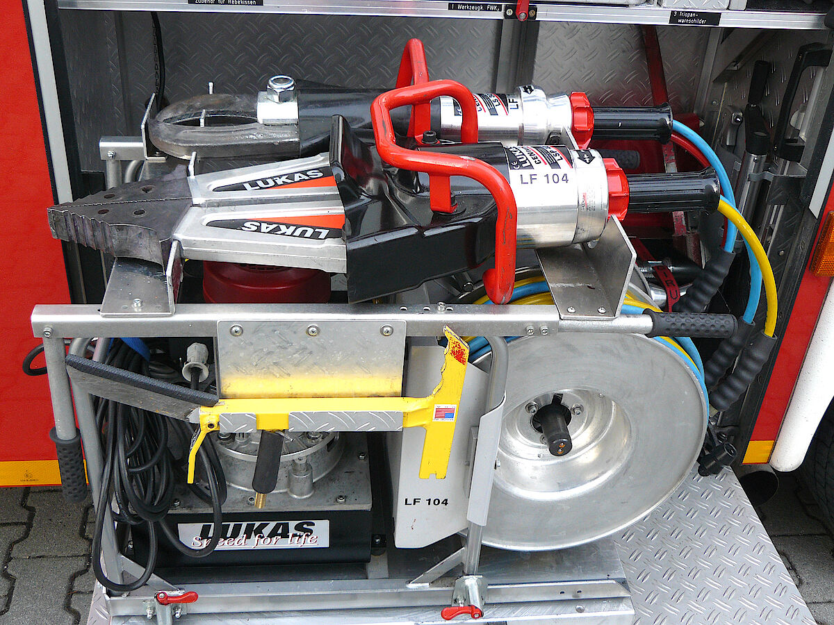 Auch für den Bereich der Menschenrettung ist das LF 16/12 gut gerüstet. Zur Rettung von eingeklemmten Personen (zum Beispiel bei Verkehrsunfällen) stehen neben hydraulischem Rettungsspreizer und -schere auch ein Rettungszylinder und Lufthebekissen zur Verfügung. Statt dem altbekannten Sprungtuch führt es einen Sprungretter mit sich. Zur Rettung und Versorgung von Verletzten stehen eine Trage sowie ein Rettungsrucksack mit Sauerstoff zur Beatmung von Patienten zur Verfügung.
