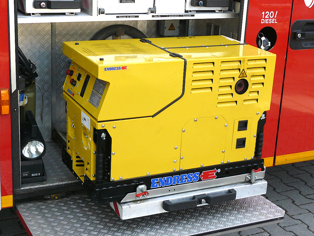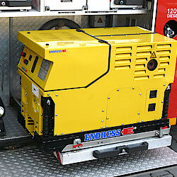 Am Fahrzeugheck ist ein pneumatischer Lichtmast montiert, der über einen tragbaren Stromerzeuger mit 13 kVA Leistung versorgt wird. Die am Fahrzeug angebrachte Umfeldbeleuchtung sorgt für zusätzliche Sicherheit bei Nacht.